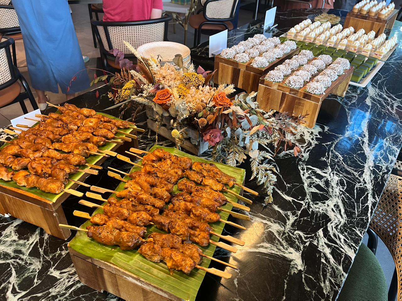 For lunch, you get unlimited servings of items like Kueh Pie Tee, Chicken Galae Skewers, Hainanese Chicken Rice, Hathaway’s Laksa, Potato Pave, Cured Salmon Gravlax & Arugula, Mini Kaya Croasts, Kueh Ko Swee, Kueh Salat, Pistachio Macarons, Strawberry Shortcake and more.