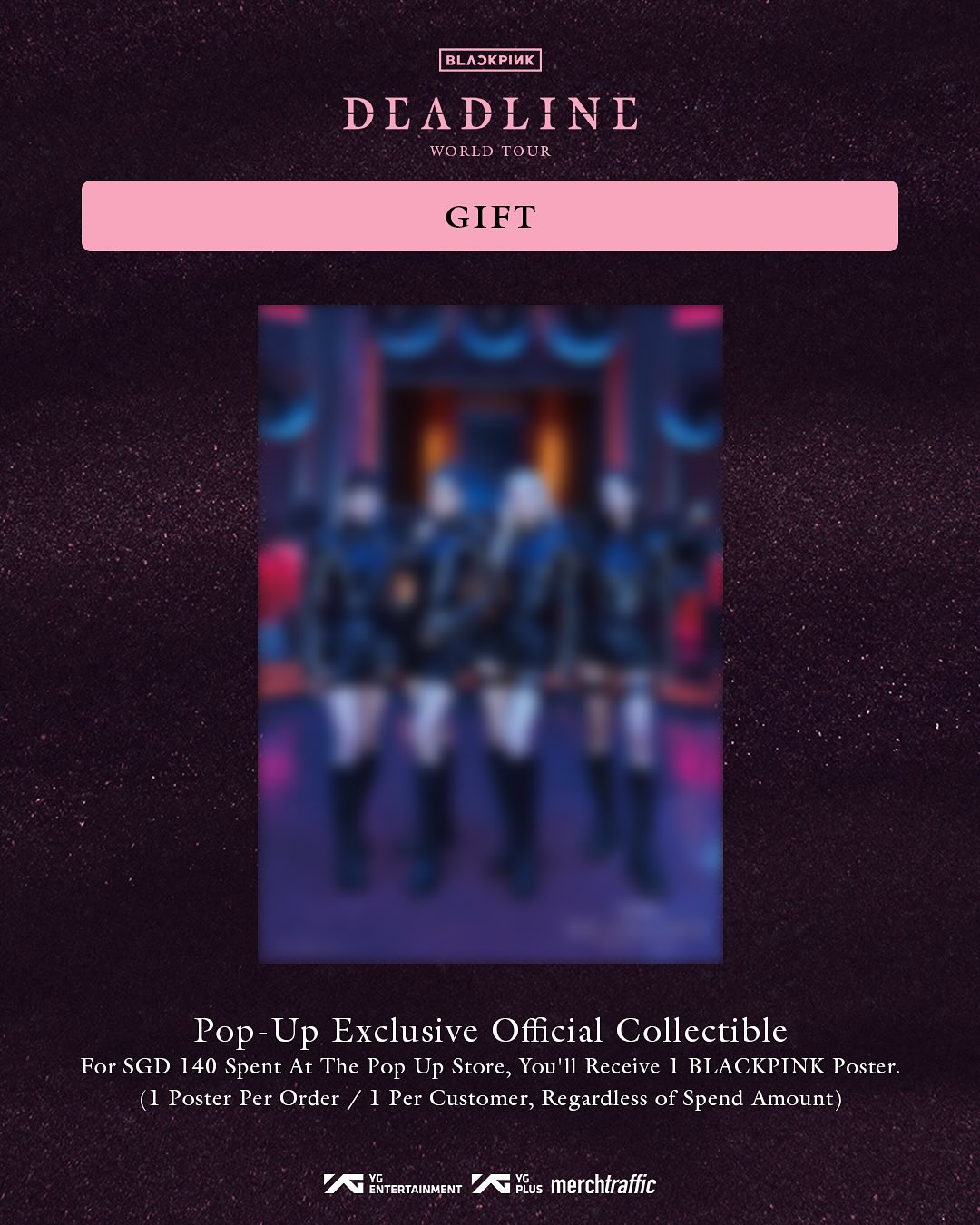 For every $80 spent at the pop-up, you’ll also be able to redeem 1 free BLACKPINK photocard (given at random from a set of 4), while stocks last. The BLACKPINK WORLD TOUR <DEADLINE> POP-UP STORE will be open at Leisure Mall Kallang from 25th November till 30th November 2025, just in time for you to purchase your goods before the BLACKPINK <DEADLINE> concert at National Stadium.