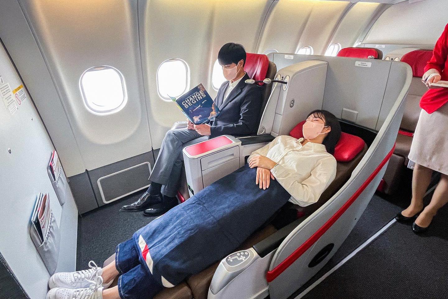 T’way will be the first South Korean low-cost airline to offer this flat-bed option for Business Class on Seoul-Singapore flights. The seats have a bed-mode function that reclines to a 165 degree angle to create a comfy flat-bed perfect for dozing off during the 6-odd hour flight between Singapore to Seoul. There will be 12 of such convertible flat-bed seats available on T’way’s A330 carrier in a 2-2-2 configuration.