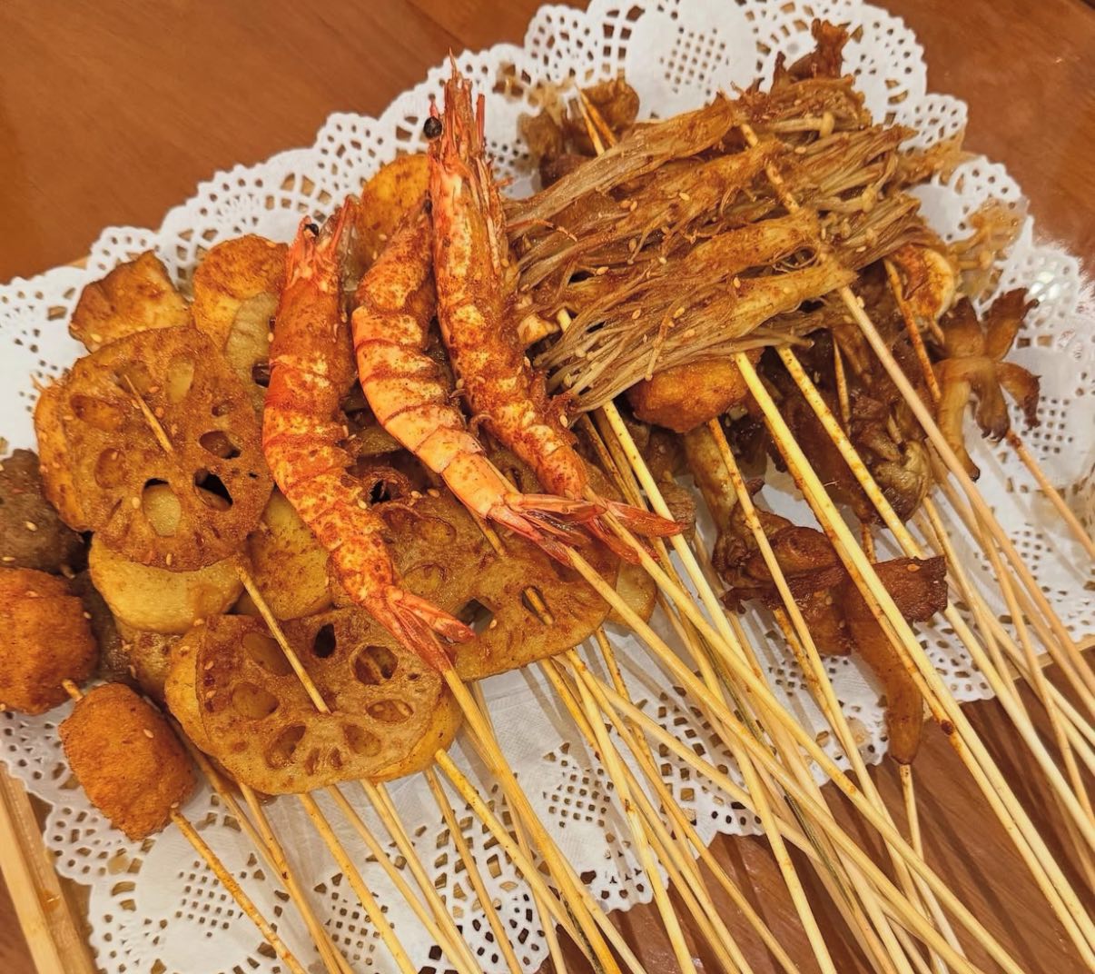For skewers, you can pick from a variety of seafood, meat, vegetable items: beef tenderloin cubes, beef shortplate, tiger prawns, crab stick, snow crab meat, chicken sausage, cheese tofu, enoki mushroom and more—all priced at 99 cents per stick. They also have the viral Strawberry Ice Matcha ($8.90), along with other milkshakes, sodas and iced teas.