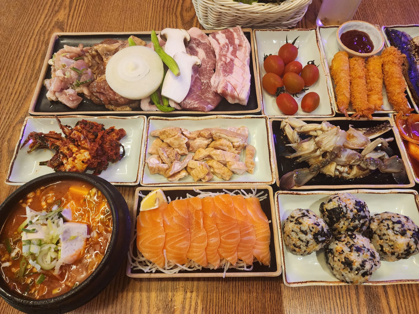 If you’re a fan of raw marinated crabs, you can get unlimited servings of the viral Korean-style soy sauce and spicy marinated crabs with the buffet. Other free flow seafood and meat items you can enjoy as part of the buffet include salmon sashimi, grilled mackerel, clam noodle soup, deep-fried shrimp, marinated pork ribs, grilled pork belly, pork jowl, pork large intestine, tteokbokki, bacon spaghetti, kimchi stew and more.