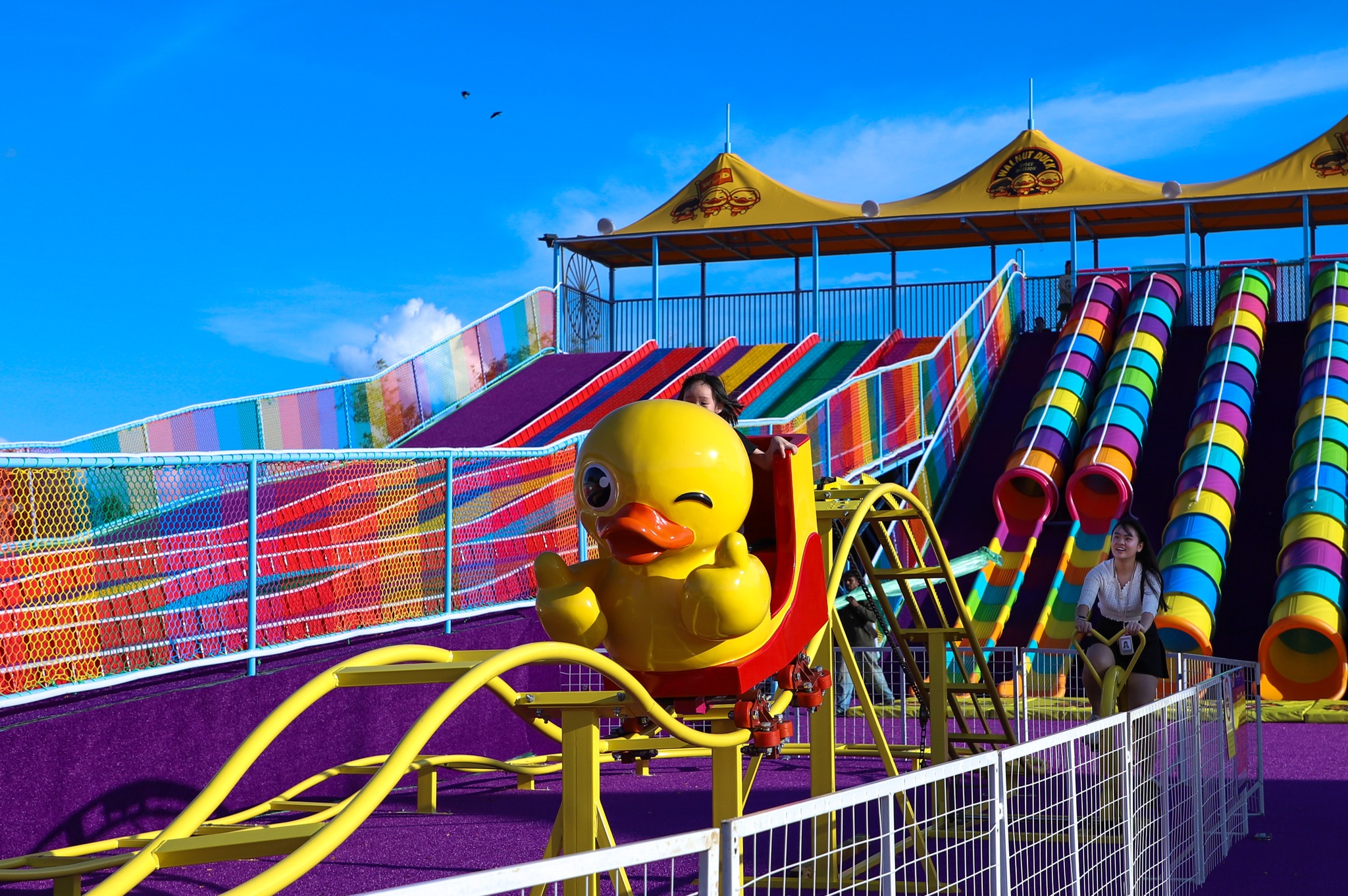 Since all the rides don’t run on electricity, most of them require “human generators” (that’s you) to actually work, you don’t just ride them—you’re the engine. Rides like the solo rollercoaster, ferris wheel and carousel are fitted with bicycles; you have to ride and pedal them to get the ride to move, and the faster you pedal, the faster your ride goes. Think theme park meets gym session—you’ll definitely be getting a good workout here. The park also features some good ol’ theme park fun that lets you get physical: like multiple rainbow slides, inflatable bouncy castle, suspension bridge, donut tire gliding and more.