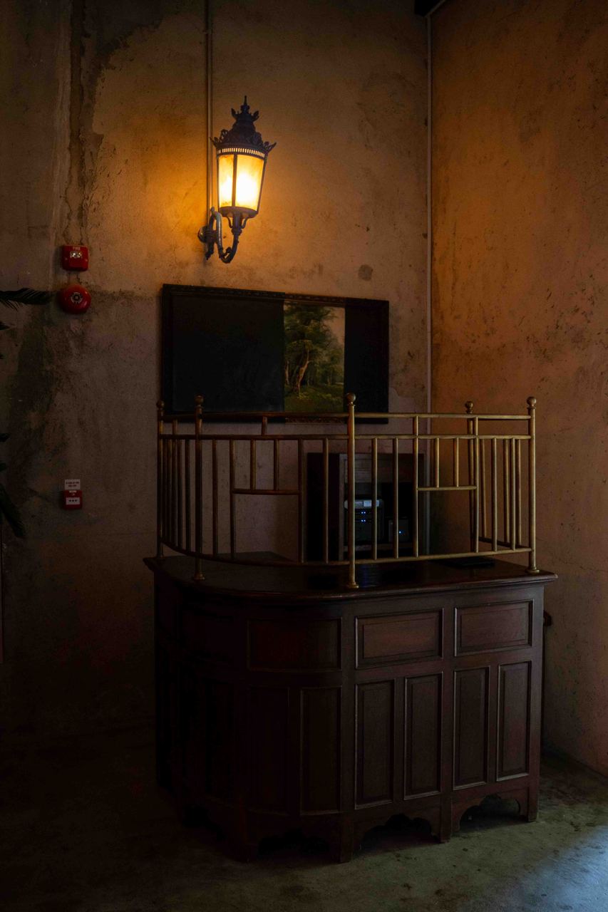 The space reminds us of some of the contemporary retail stores you might see in South Korea, with a glass “enclosure” within the main restaurant featuring retro analog TVs literally spiked onto concrete pillars and lit by colourful fluorescent lighting for an eclectic vibe. The space also feels like we’re dining in an ancient mansion of sorts, especially with the moody, almost eerie vintage lamps lighting the room.