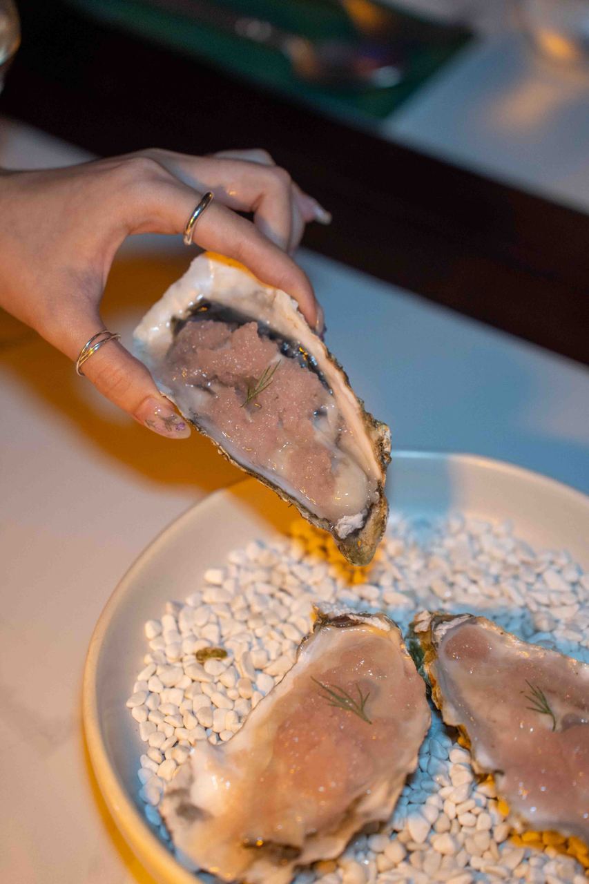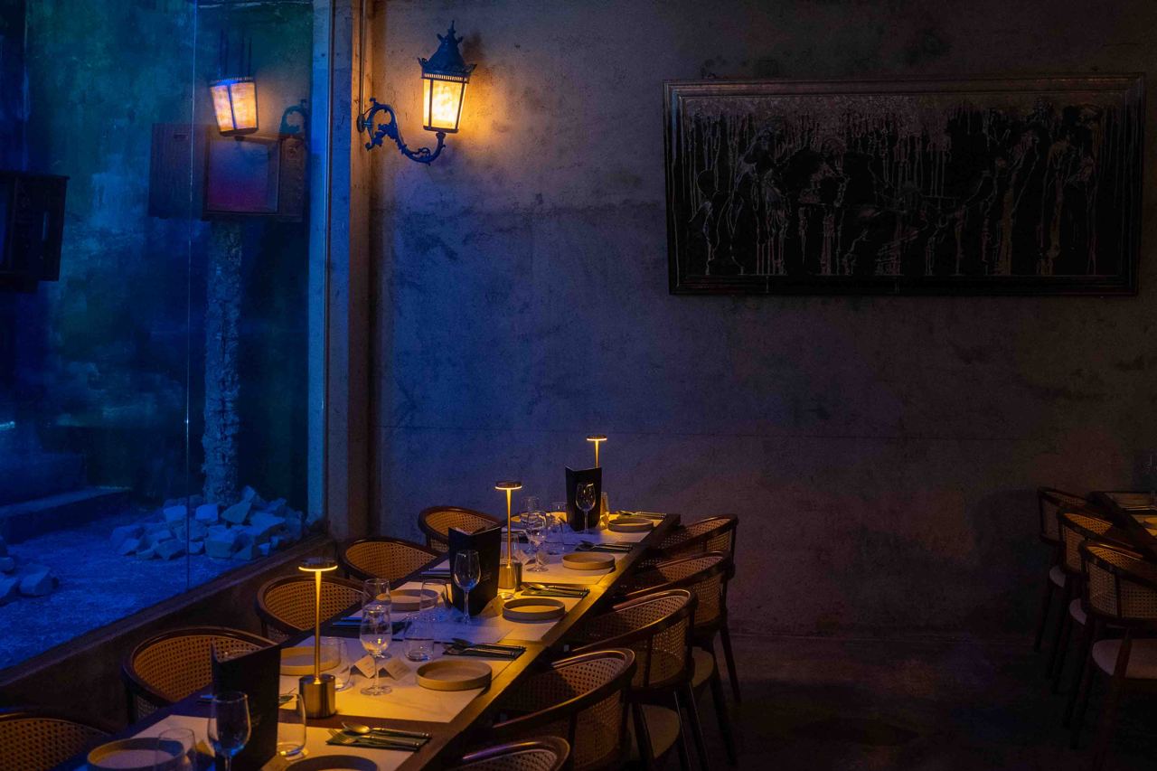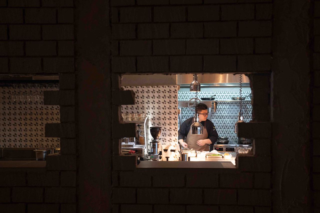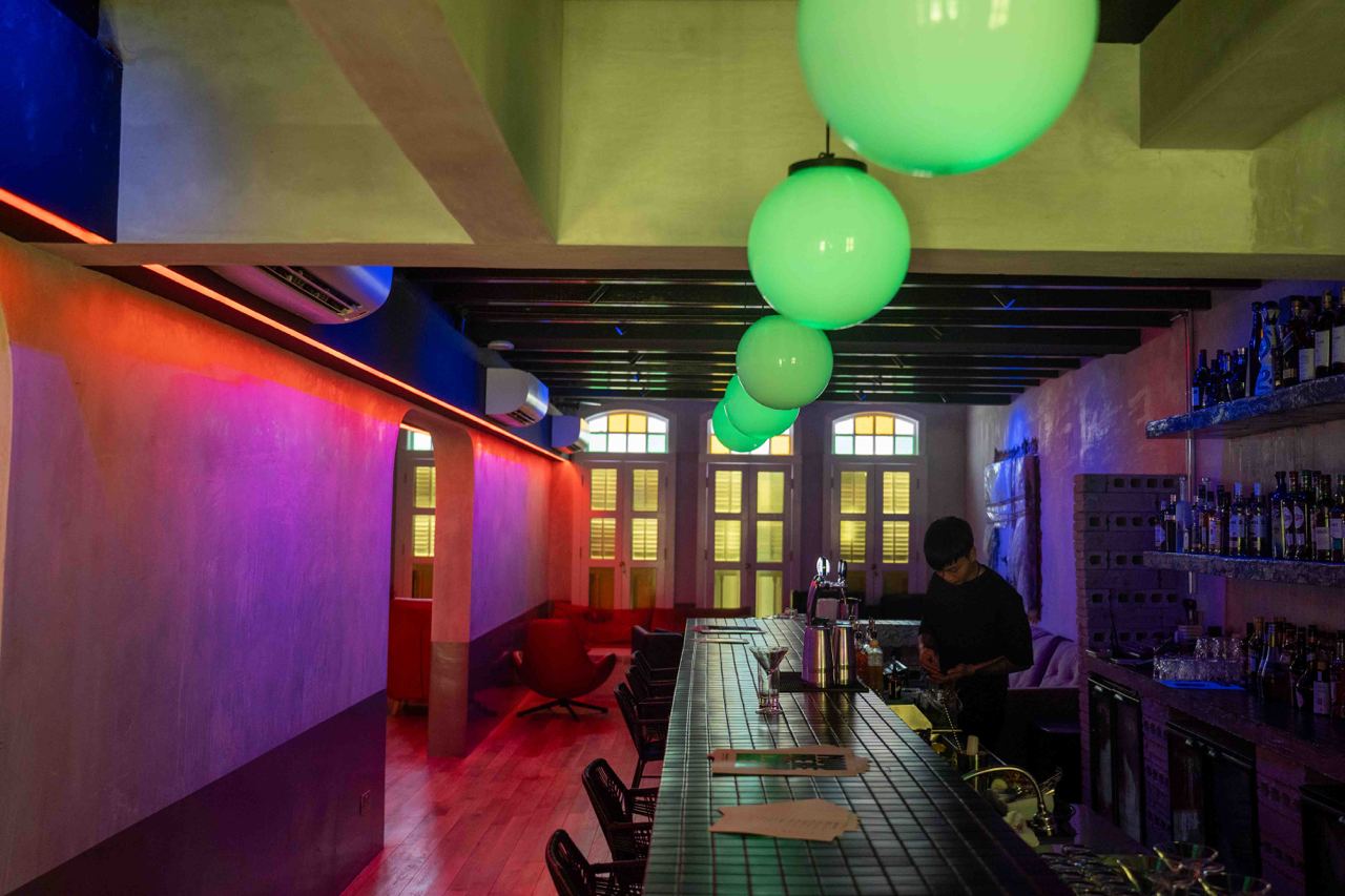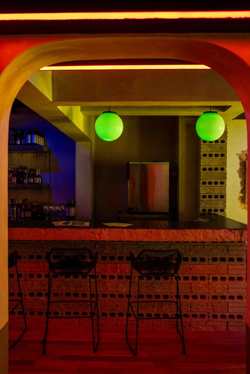 The first level houses the main restaurant, with a more brutalistic, almost goth-like industrial aesthetic with raw and exposed textures, concrete walls and dim lighting. After your meal, head to the second level for drinks at Nowhere, a cocktail bar featuring a more fun and playful vibe. We especially loved the neon yellow-orange tinted glass windows and quirky mismatched furniture.