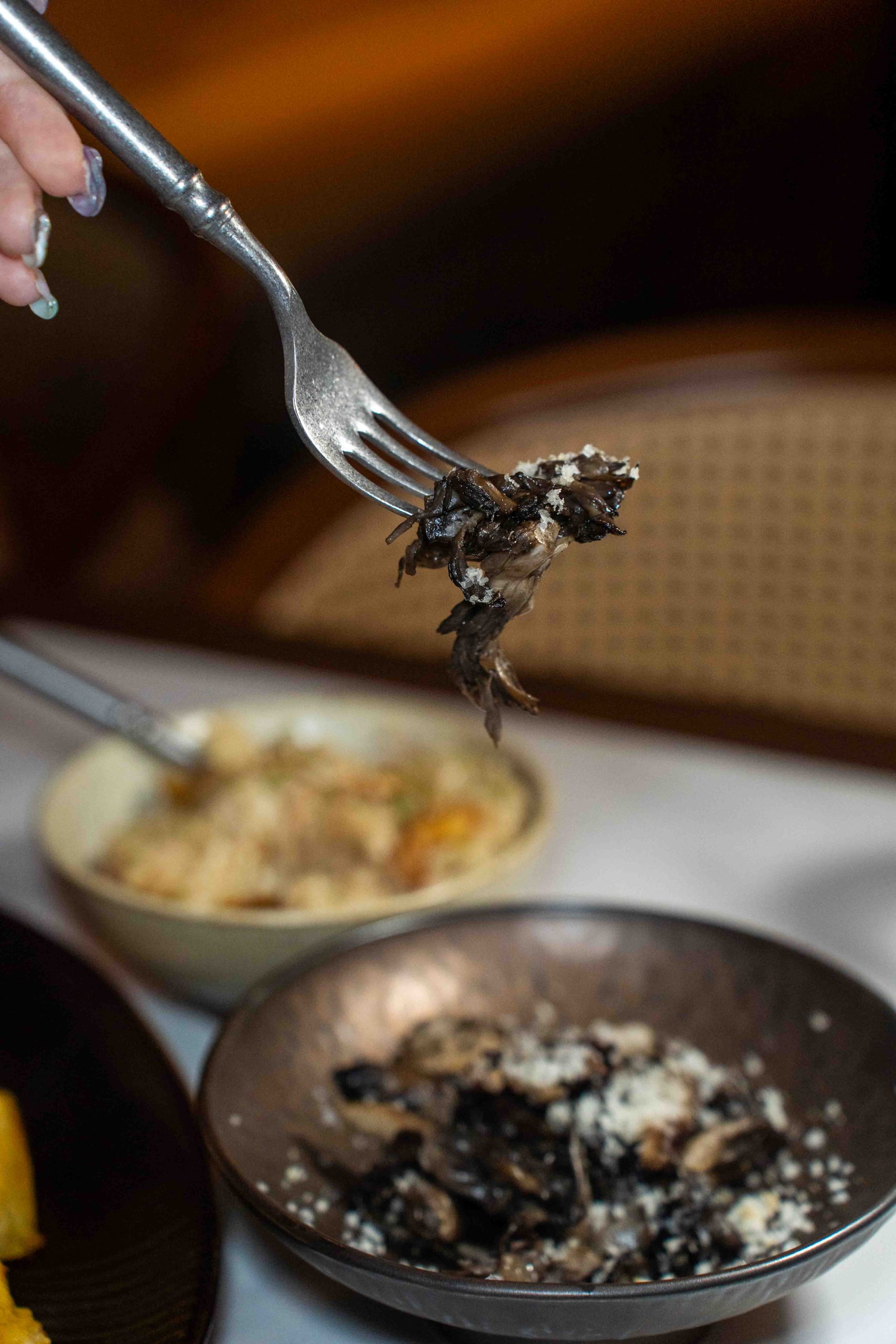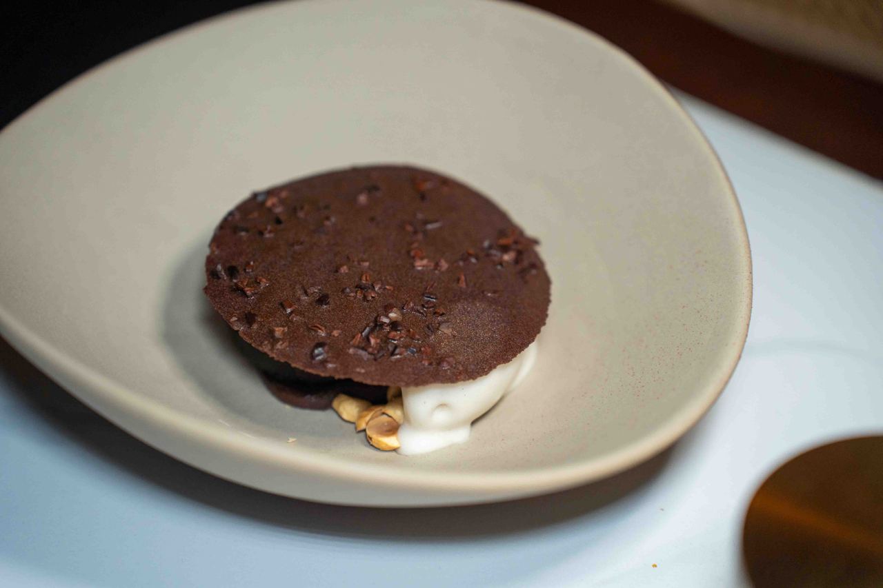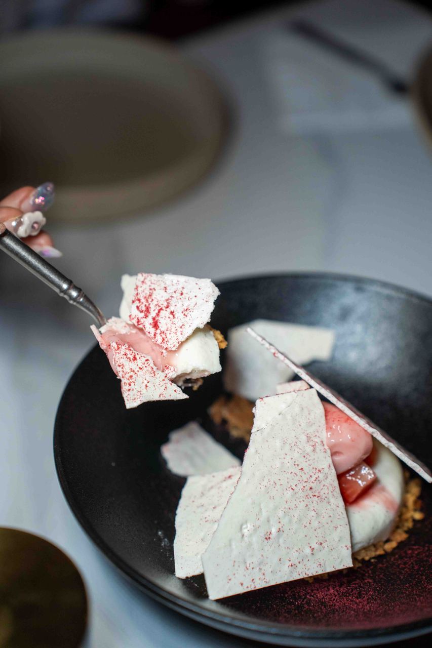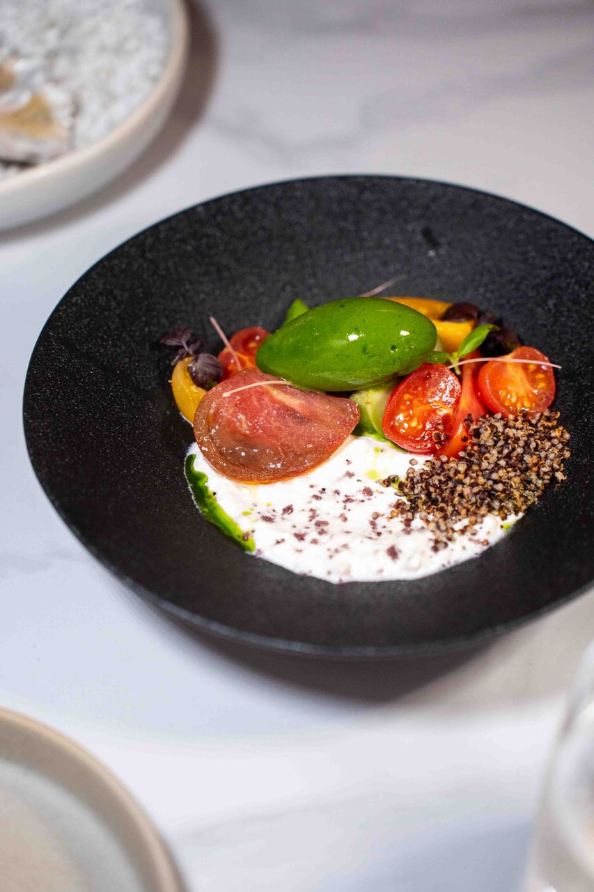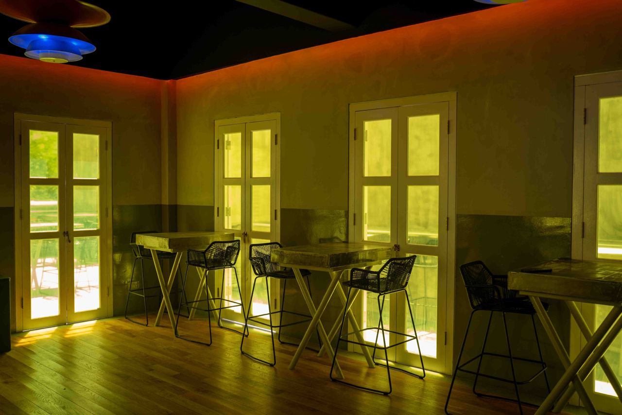 The first level houses the main restaurant, with a more brutalistic, almost goth-like industrial aesthetic with raw and exposed textures, concrete walls and dim lighting. After your meal, head to the second level for drinks at Nowhere, a cocktail bar featuring a more fun and playful vibe. We especially loved the neon yellow-orange tinted glass windows and quirky mismatched furniture.