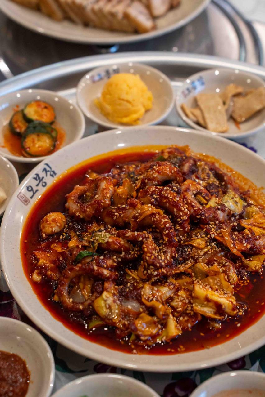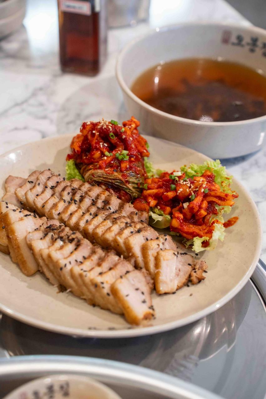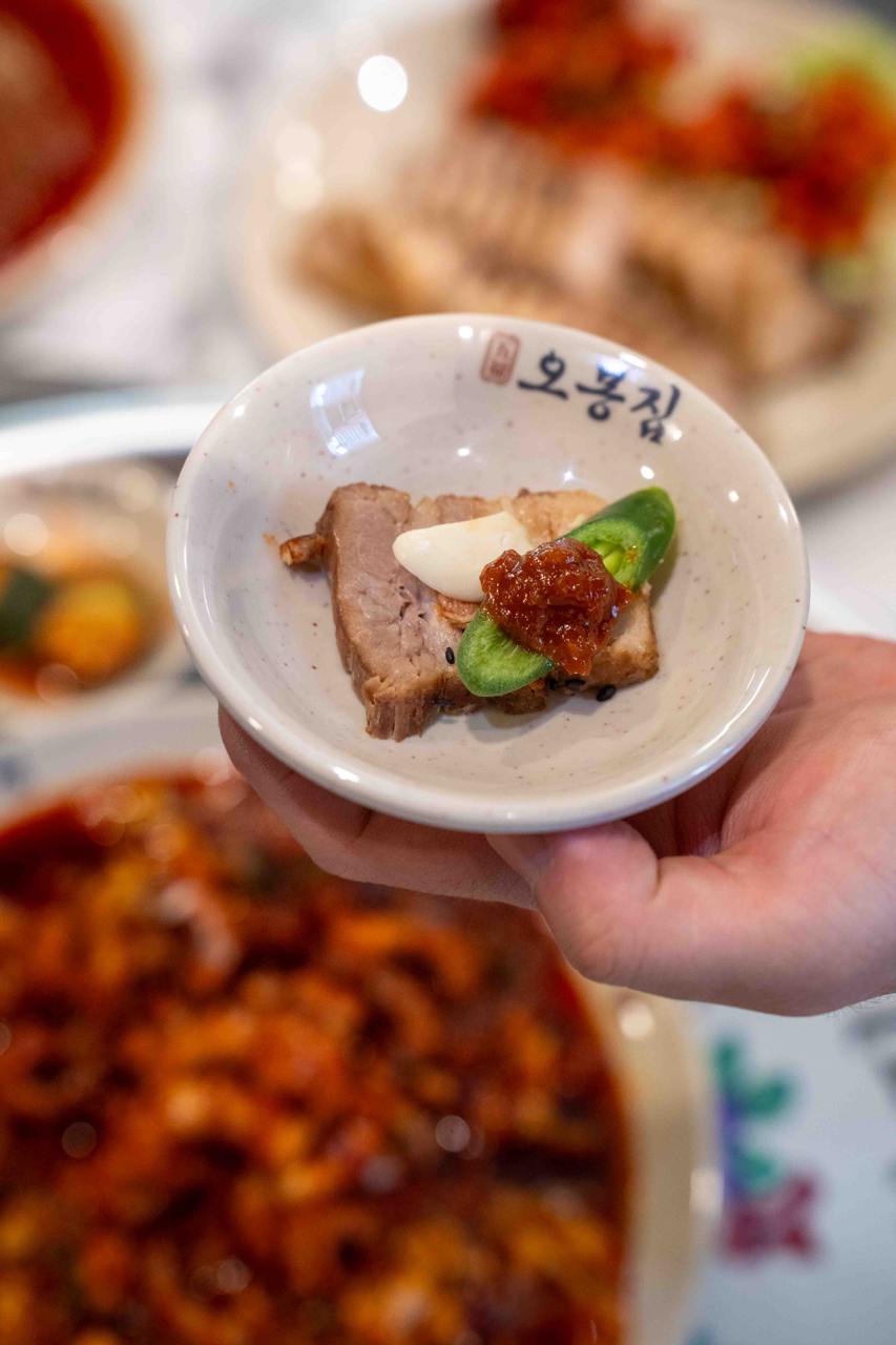 You can get the Fire-Grilled Spicy Octopus ($55 for 2 persons) on its own, or as part of their signature Obongzip Special ($108), that comes 3 of their signature dishes: the Fire-Grilled Spicy Octopus, Pork Belly Bossam and Makguksu (spicy mixed buckwheat noodles). The set also comes with a generous portion of hearty seaweed soup and an assortment of various refillable side dishes. For the bossam, you’re recommended to use the lettuce to make veggie wraps with the pork slices, homemade fresh kimchi and sauces.