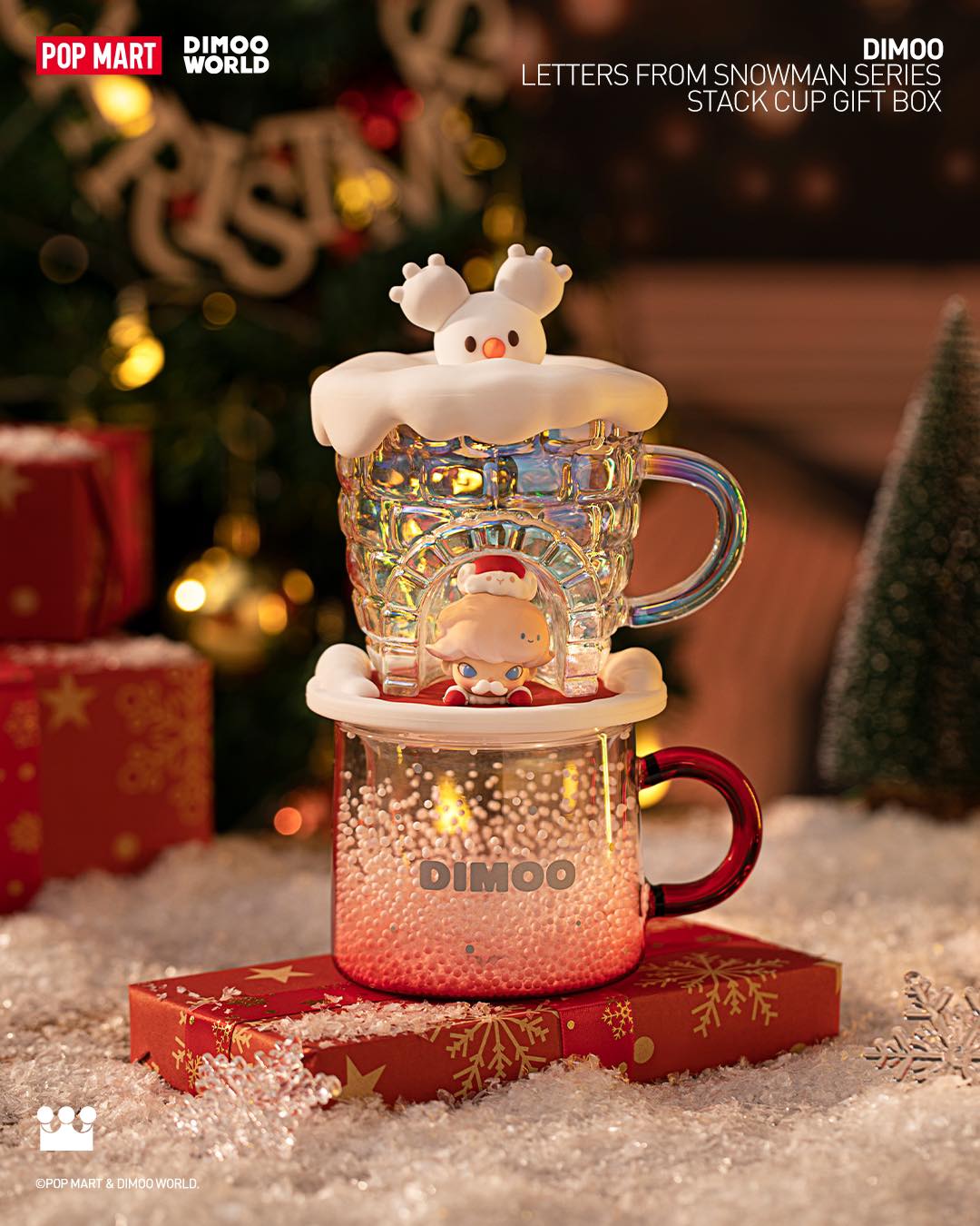 Each scented candle comes in a different coloured glass jar as well, so you can definitely reuse/repurpose it if you’ve finished burning the candle. Another new DIMOO item that’s great for gifting your fellow POP MART-loving friends (or yourself) is the DIMOO Letter from Snowman Series Stack Cup Gift Box, featuring festive-inspired cups that you can stack on top of one another to make an adorable decor piece.