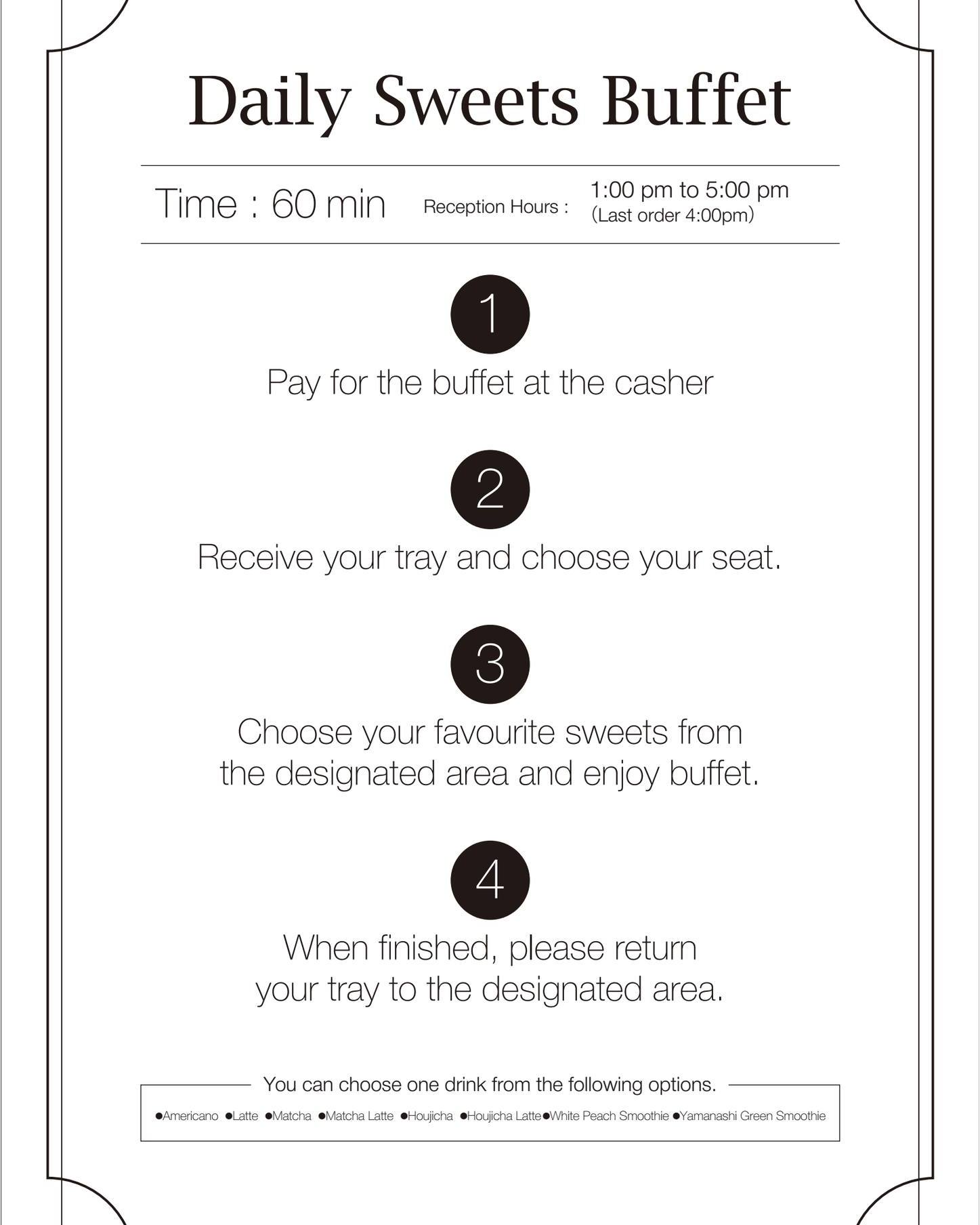 For the buffet, you get to feast on unlimited servings of Châteraisé cakes, pastries, sweets and more, and enjoy as much as you can for a dining duration of 1 hour. The selection of desserts available for the buffet will differ daily, and the buffet also comes with your choice of drink: like coffee, matcha or fruit smoothies.