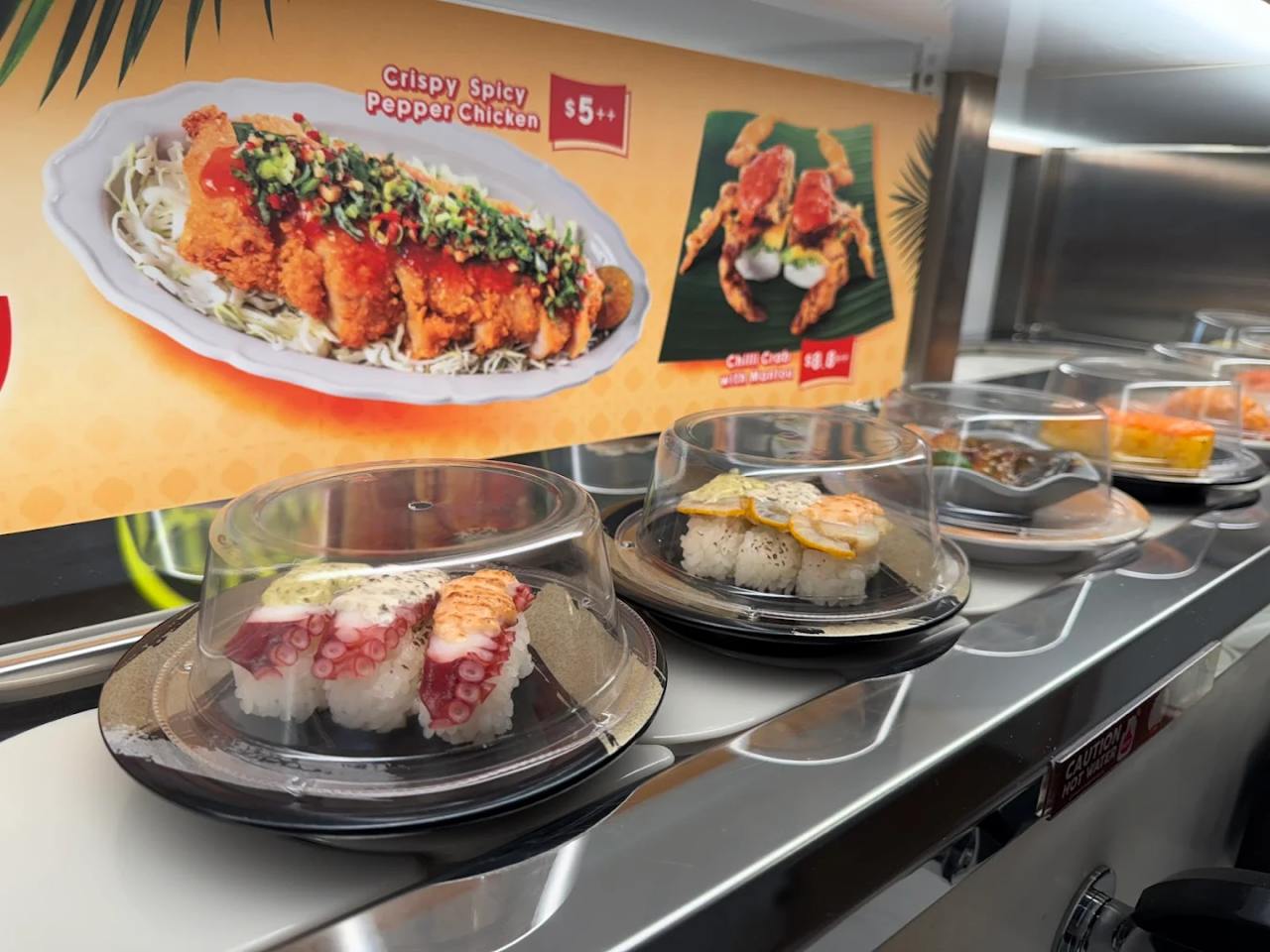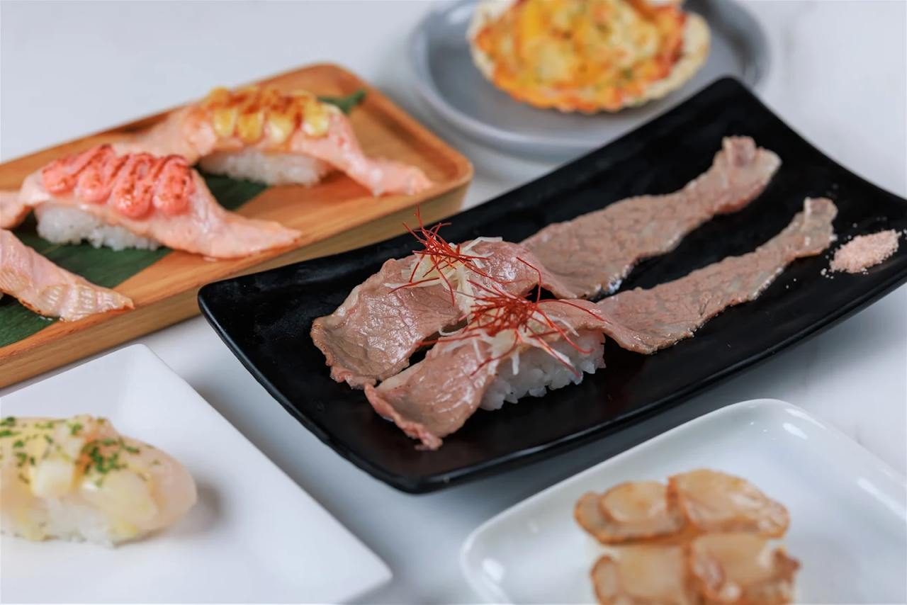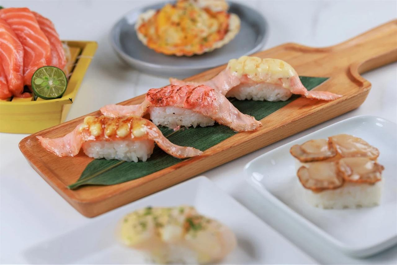 The sushi buffet includes over 100 varieties of sushi, mains, sides, desserts and more—and you can grab the items straight off the conveyor belt to enjoy. Some of the items you can expect from the buffet include seared beef sushi, ikura chawanmushi, salmon sashimi, aburi mentaiko ebi sushi, negitoro gunkan, unagi don, garlic clam udon, spicy salmon sushi, truffle scallop sushi, XL fried ebi, mentaiko tamago and more.
