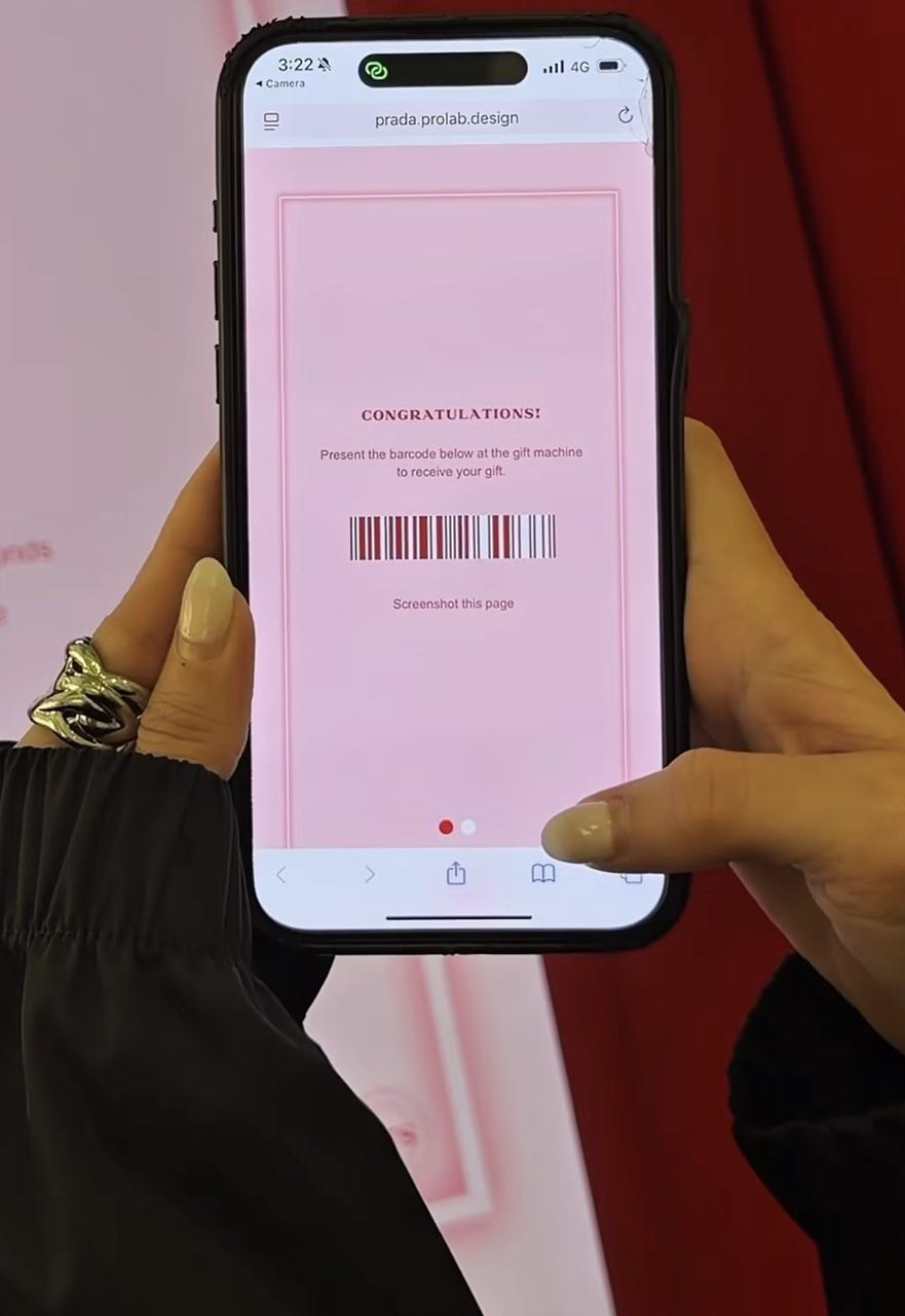 In order to redeem a play at the vending machine, you’ll first need to make any purchase at the Prada store. There’s no minimum spending required, so you don’t need to make a huge purchase if you just want a go at the vending machine. Some of the lowest priced items in the Prada store include candle lids or fragrances.