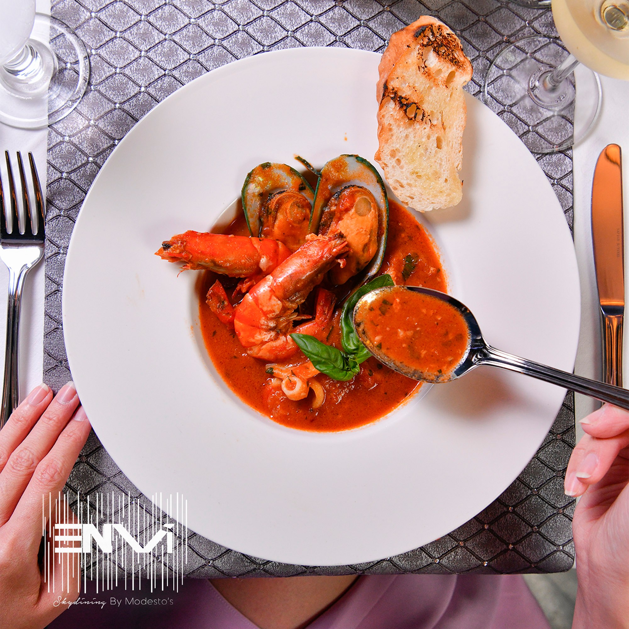 Envi serves fusion food starting from a pocket-friendly RM 15.80, as well as an extensive selection of alcoholic drinks like wine, spirits, beer, cocktails and more. Highlights from the menu include the likes of Panseared Duckbreast (RM 90), Spaghetti Stuffato with Grilled Seafood (RM 78) and Dragone (RM 44), just to name a few.