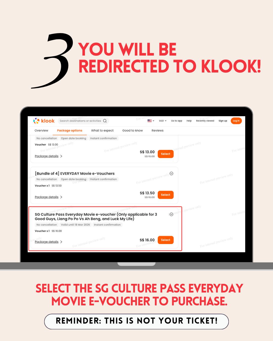 3. Select “SG Culture Pass Everyday Movie e-voucher” to purchase after being redirected to Klook