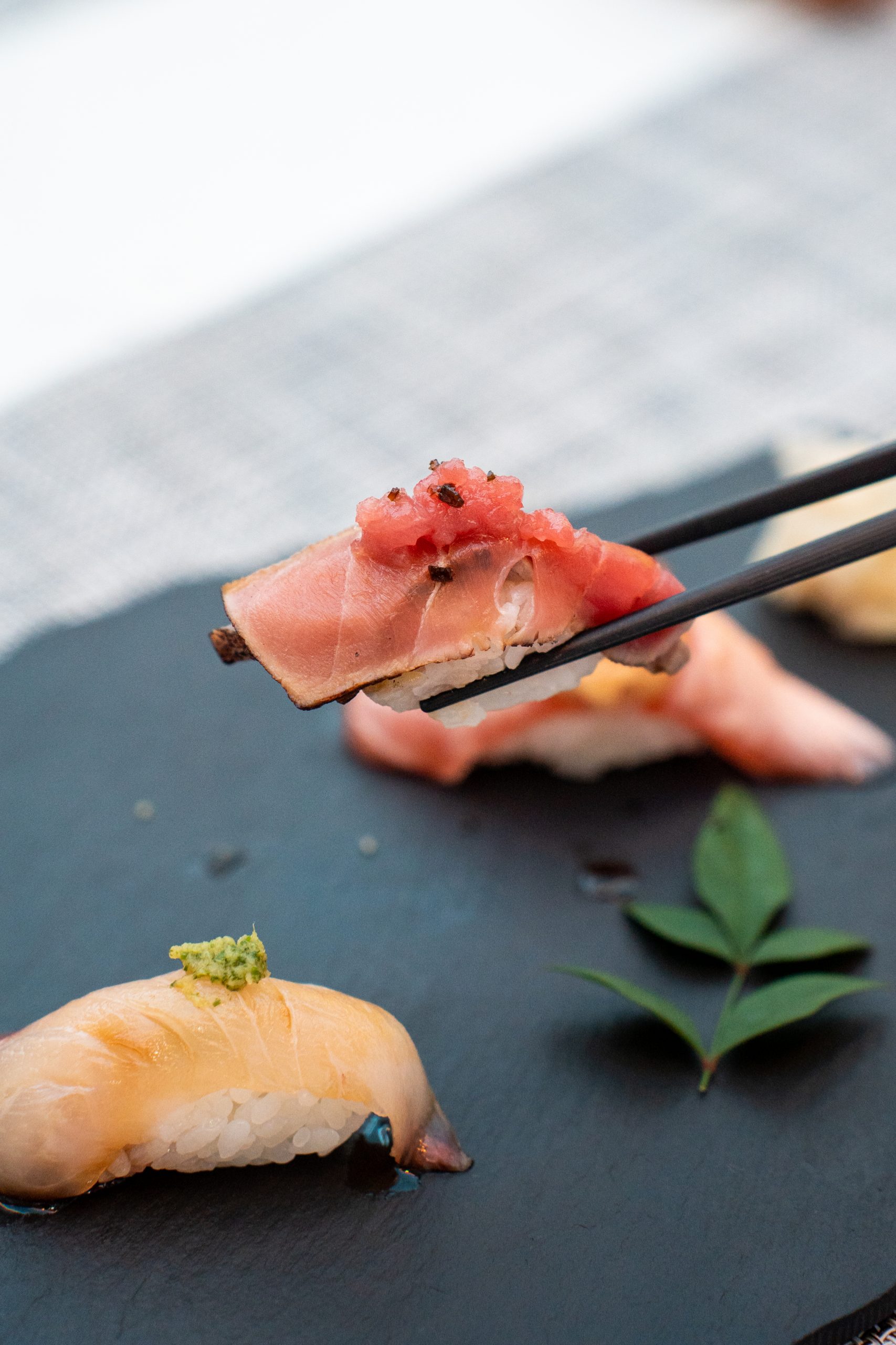 One particular standout item from the course are the sashimi, which were generously cut in thick slices—something that sashimi lovers are sure to appreciate. We were served hamachi, seared salmon belly and soy-aged scallop during our visit, all of which were super fresh and not fishy in the slightest. We also appreciated how HONCHO varied their nigiri pieces, jazzing up each piece with toppings like grated ginger scallions, negitoro and sea kelp and aburi-ed mentaiko with soy-aged ikura for something a little more unique than usual.