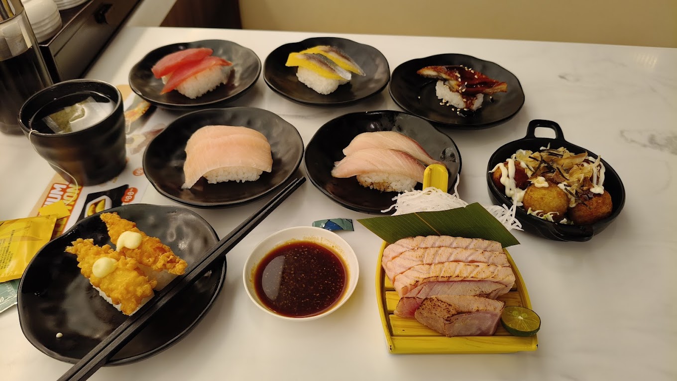 Some items you can enjoy from the buffet selection include Hamachi Sushi, Tuna Sushi, Cooked Scallop, Cooked Octopus with Truffle, Caramelised Abalone Sushi, Ark Shell Sushi, Grilled Salmon Belly, Seared Swordfish, Thick-cut Unagi, Thai Style Clams, California Roll, Beef Cube Donburi, Chawanmushi with Ikura, Garlic Pork Belly Udon, Takoyaki, Tempura Temaki, Grilled Mussel with Mayo and much more.