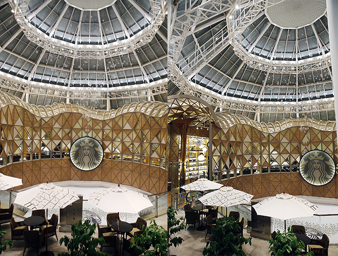 Situated on the 3rd floor of Famille Station Mall, right next to the Express Bus Terminal in Seoul, Starbucks Famille Park is regarded one of seven most beautiful franchise outlets in the world.
