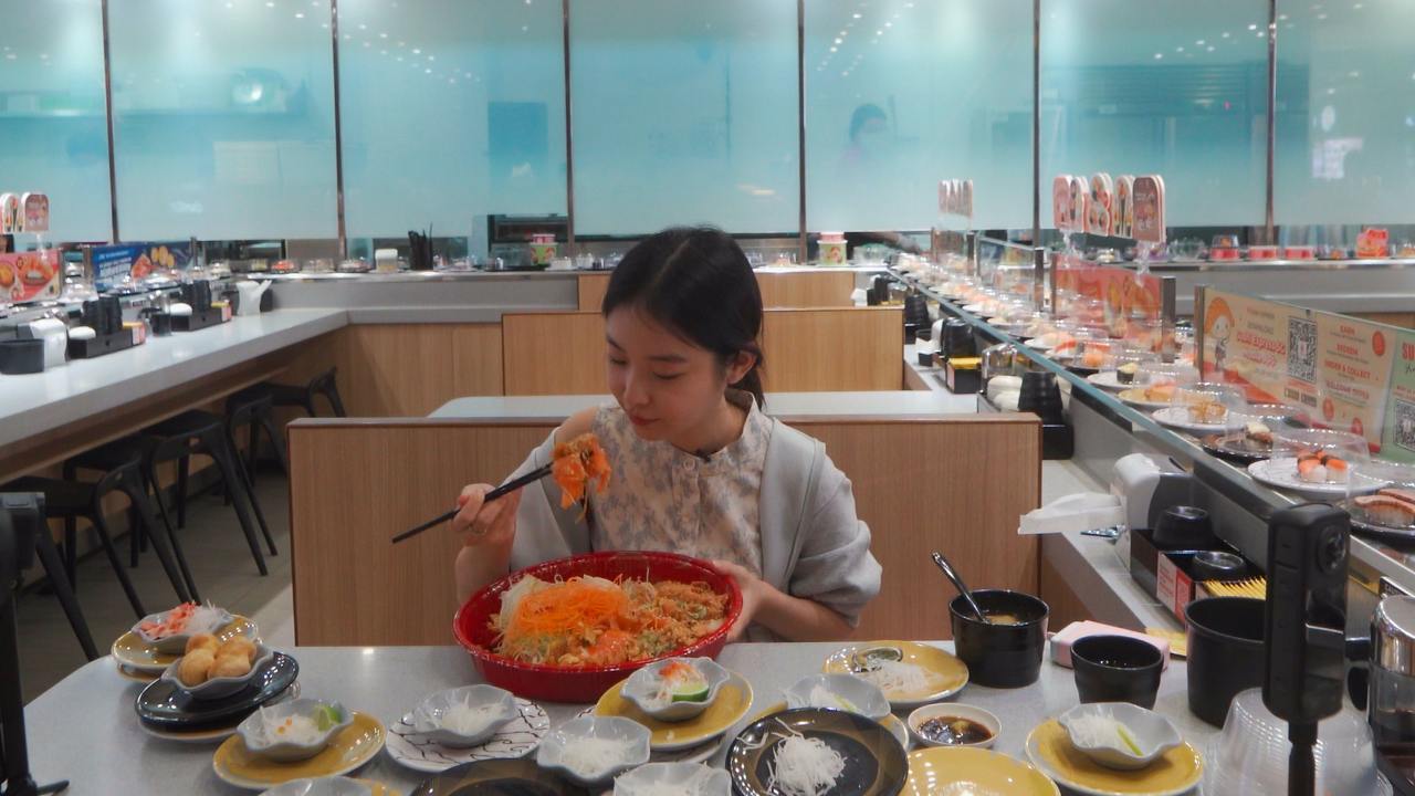 On one of Zoe’s recent mukbang adventures, she feasted on one of her favourite foods, sushi. And boy, did she not disappoint. Zoe proved her eating prowess by downing over 100 plates of sushi in one sitting—103 plates to be exact. On top of all that sushi, she even ate Yu Sheng, and still has room for dessert. With numbers like that, it’s pretty clear she’s got some serious eating skills—she could even be the “Tzuyang” of Singapore.