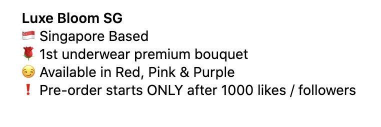 The flowers in the bouquet are not made from just underwear, it also includes premium soap flowers, artificial Eucalyptus and fairy lights. Price wise, the bouquets cost $89.90 each, and there are more than 12 design options available to choose from. But wait, apparently you can’t order them just yet—pre-orders for the underwear bouquets only start once their social media pages hit 1000 followers/likes, according to Luxe Bloom SG’s Instagram bio and TikTok captions. So, what do you think of these novel underwear bouquets: romantic or just weird? You decide.