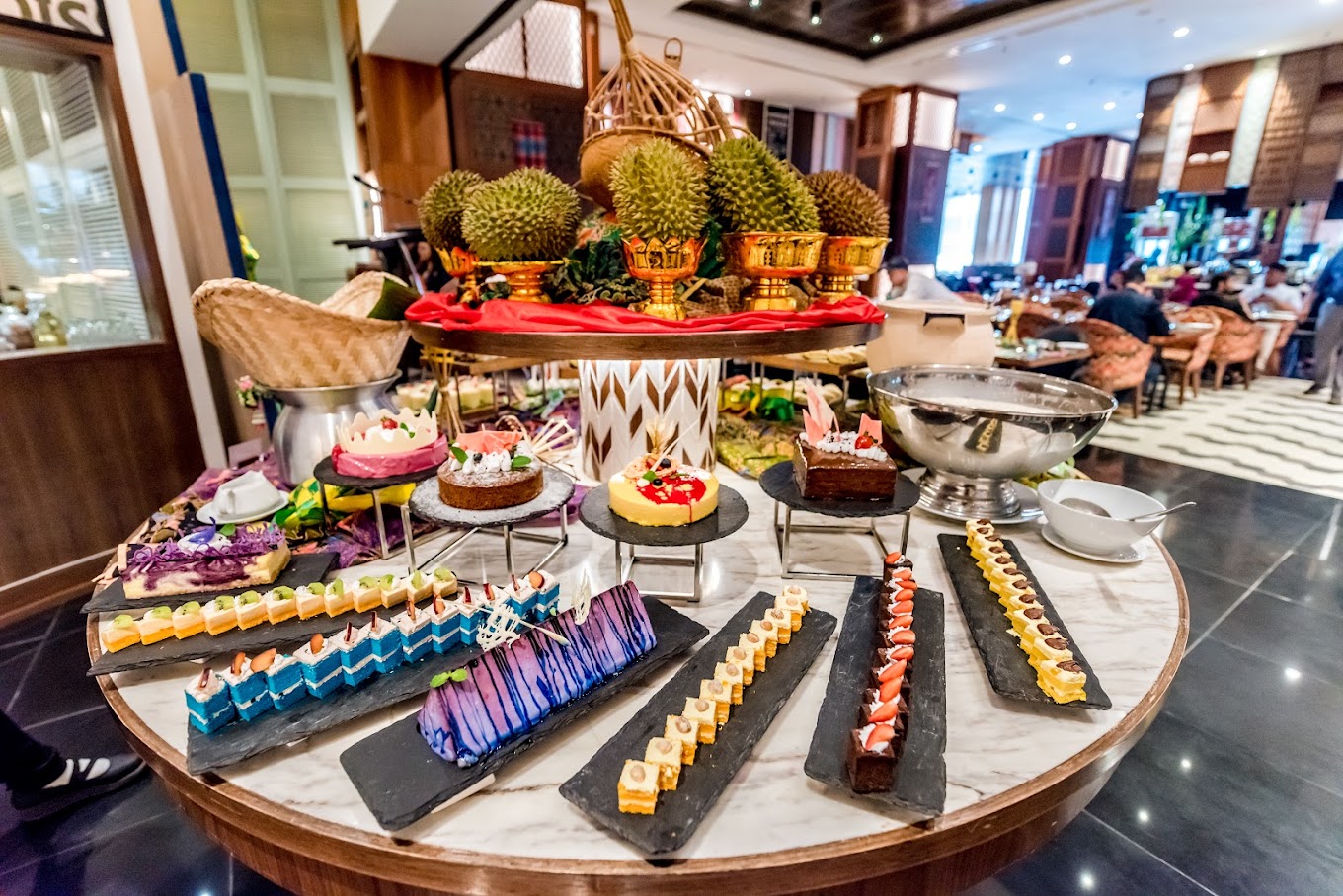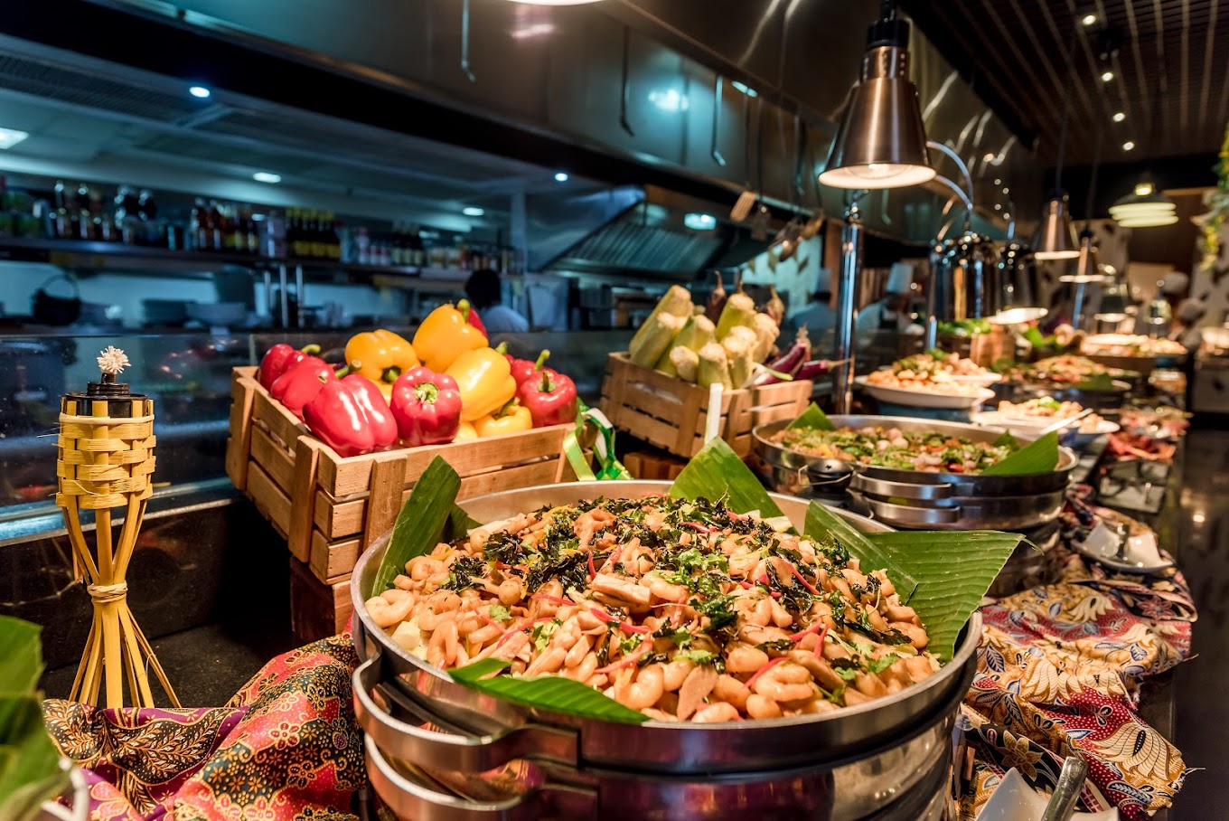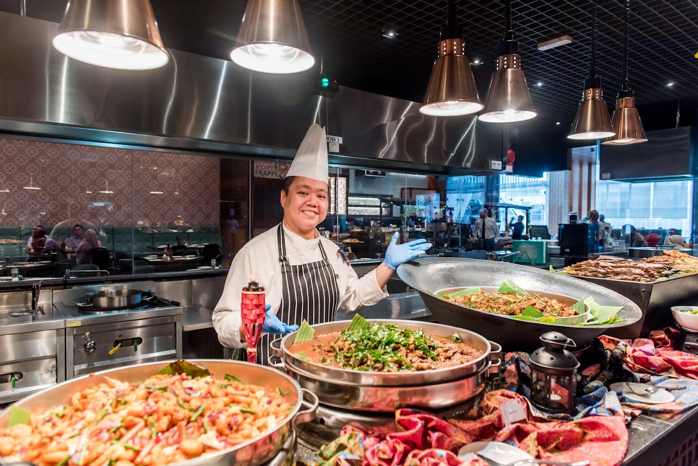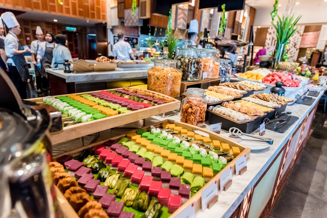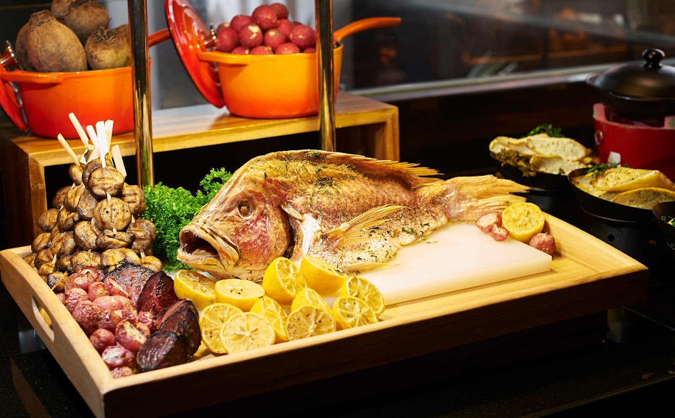 The dinner buffet at Amari’s Amaya Food Gallery boasts a slew of seafood like oysters grilled to order, salmon sashimi, octopus, poached jumbo prawns, mussels, scallops, freshly-shucked oysters and more; plus live cheese wheel pasta, shawarma, nasi ayam, assorted charcoal-grilled BBQ meats, DIY hotpot and other classic Malaysian favourites on rotation.