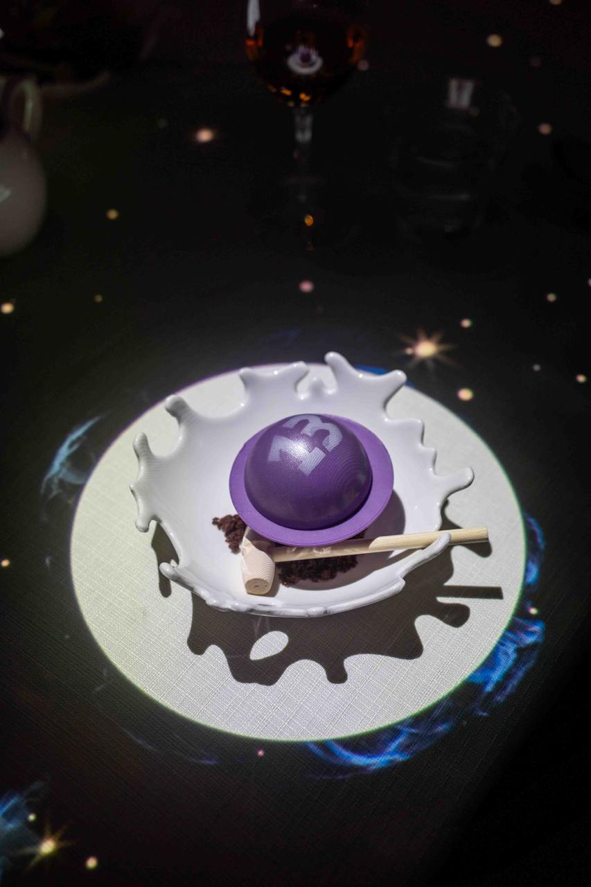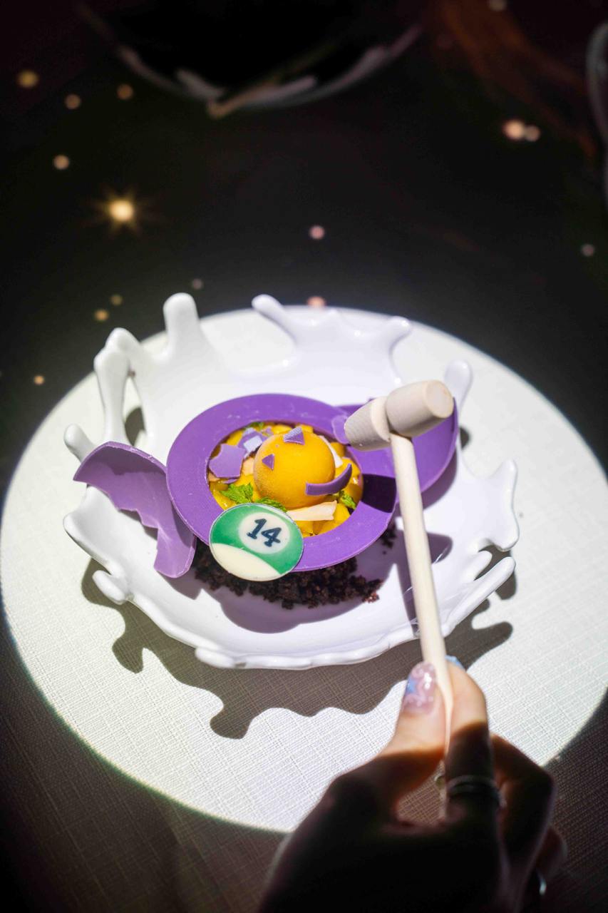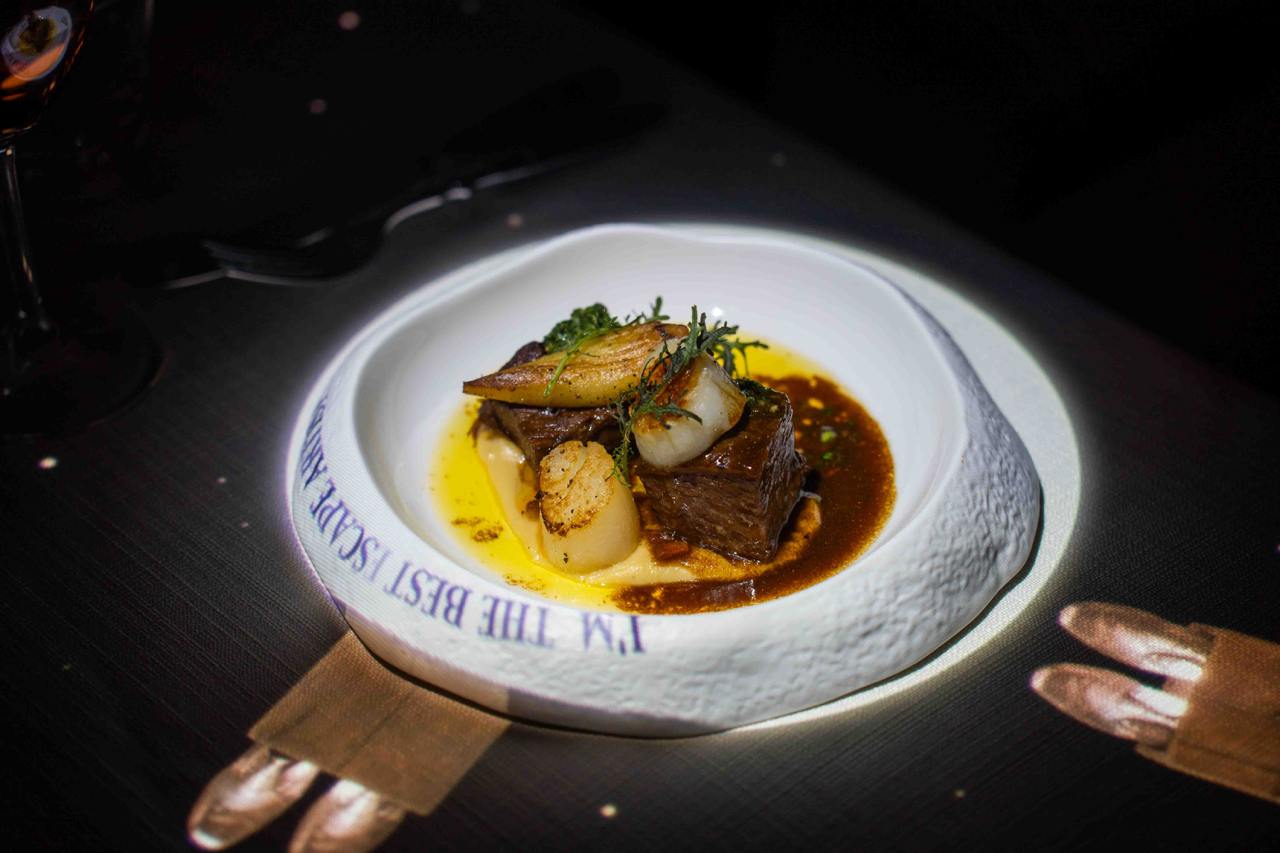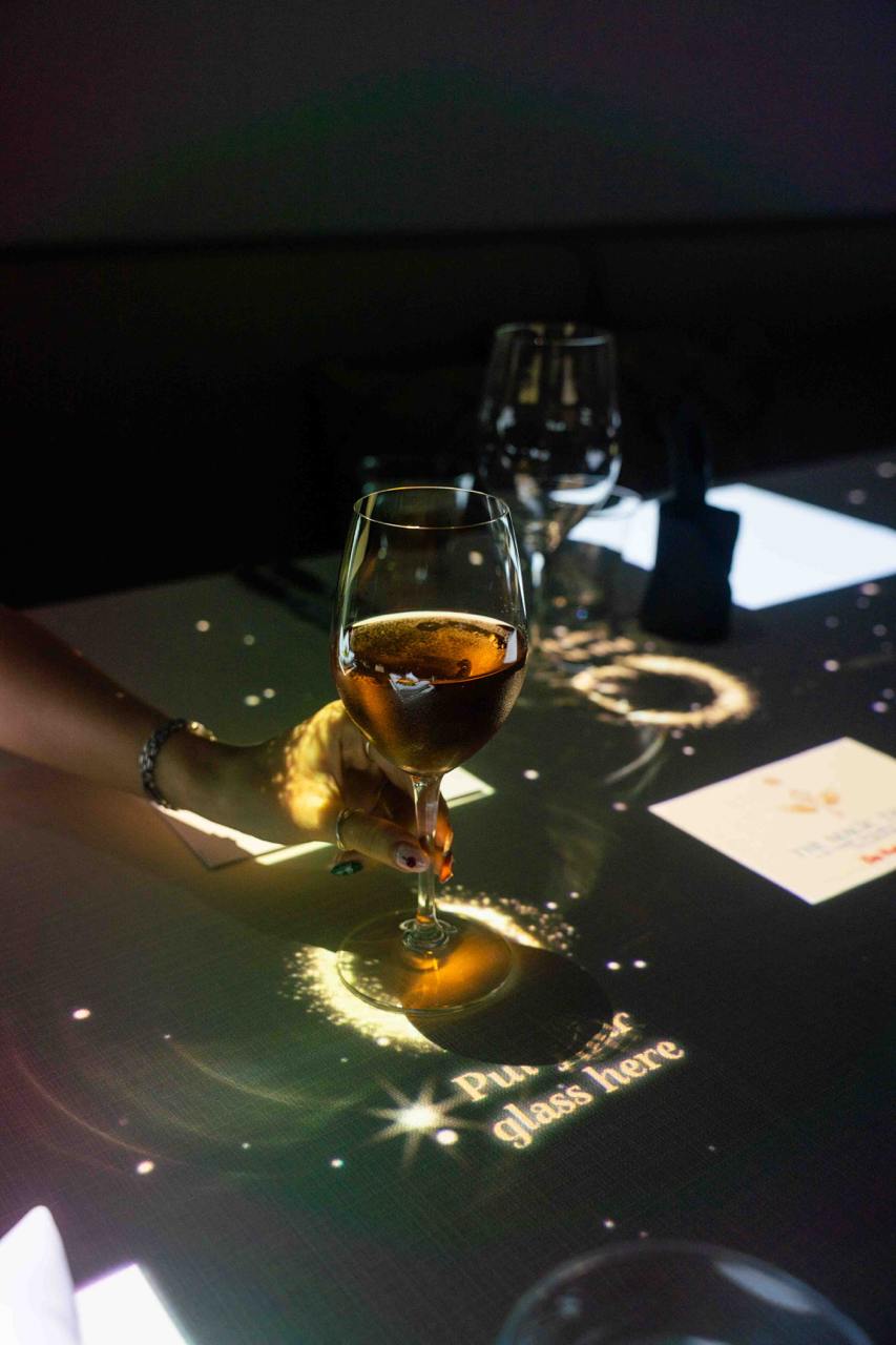 For the main course, we were served an 18-hour slow cooked Black Angus beef short rib with seared King scallops, which were quite restaurant-quality if you ask us. We ended with a smash dessert; served in a chocolate ball which we had to crack open with a wooden hammer for a final flourish and surprise to end the experience. Throughout the course, you’ll also be kept entertained by even more digital projections while you dine.