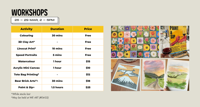 Beyond simply viewing the artworks, visitors can also take part in hands-on workshops running from 25 to 29 March (2pm to 6pm), alongside art performances on 28 and 29 March. Designed to be approachable and easy to join, these sessions invite everyone — whether you’re a seasoned hobbyist or someone who hasn’t picked up a paintbrush since school — to get involved and try their hand at creating something of their own.