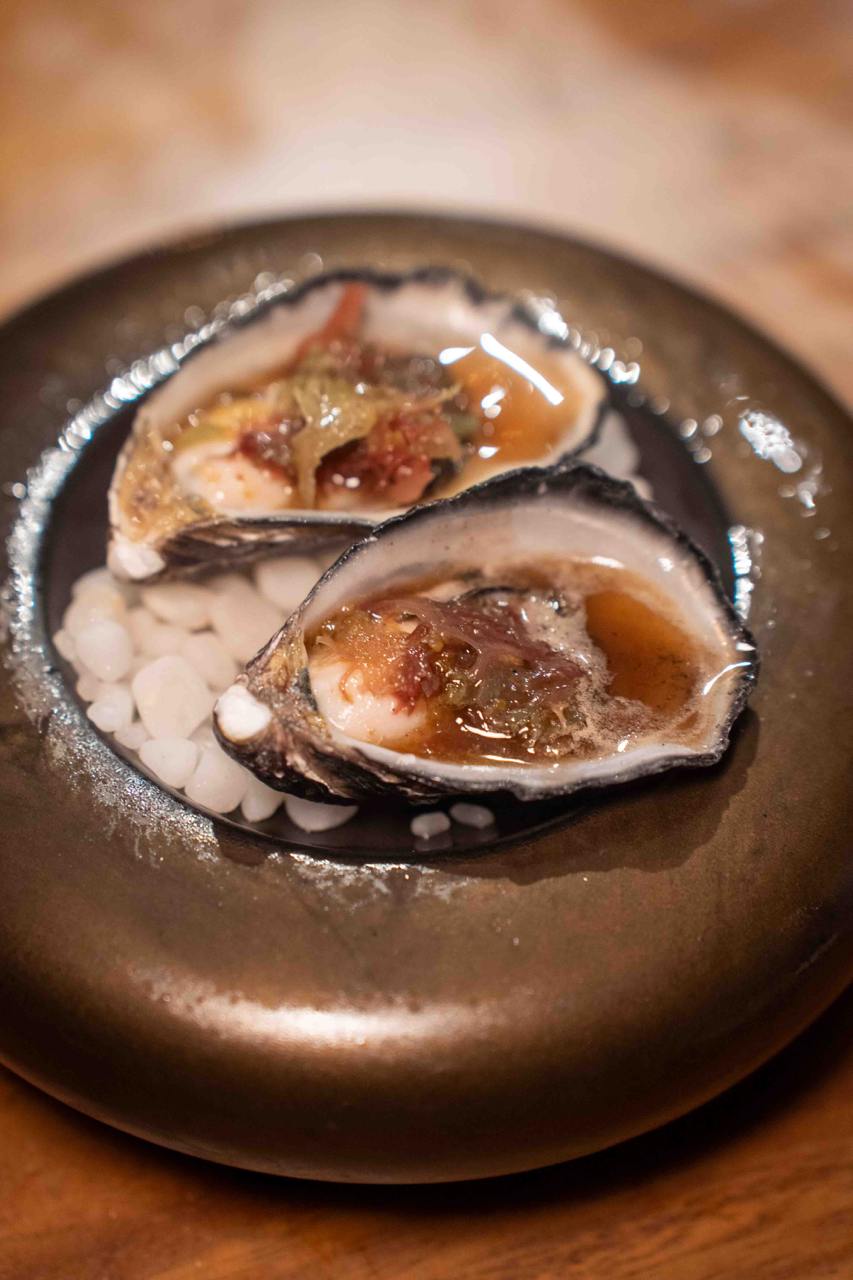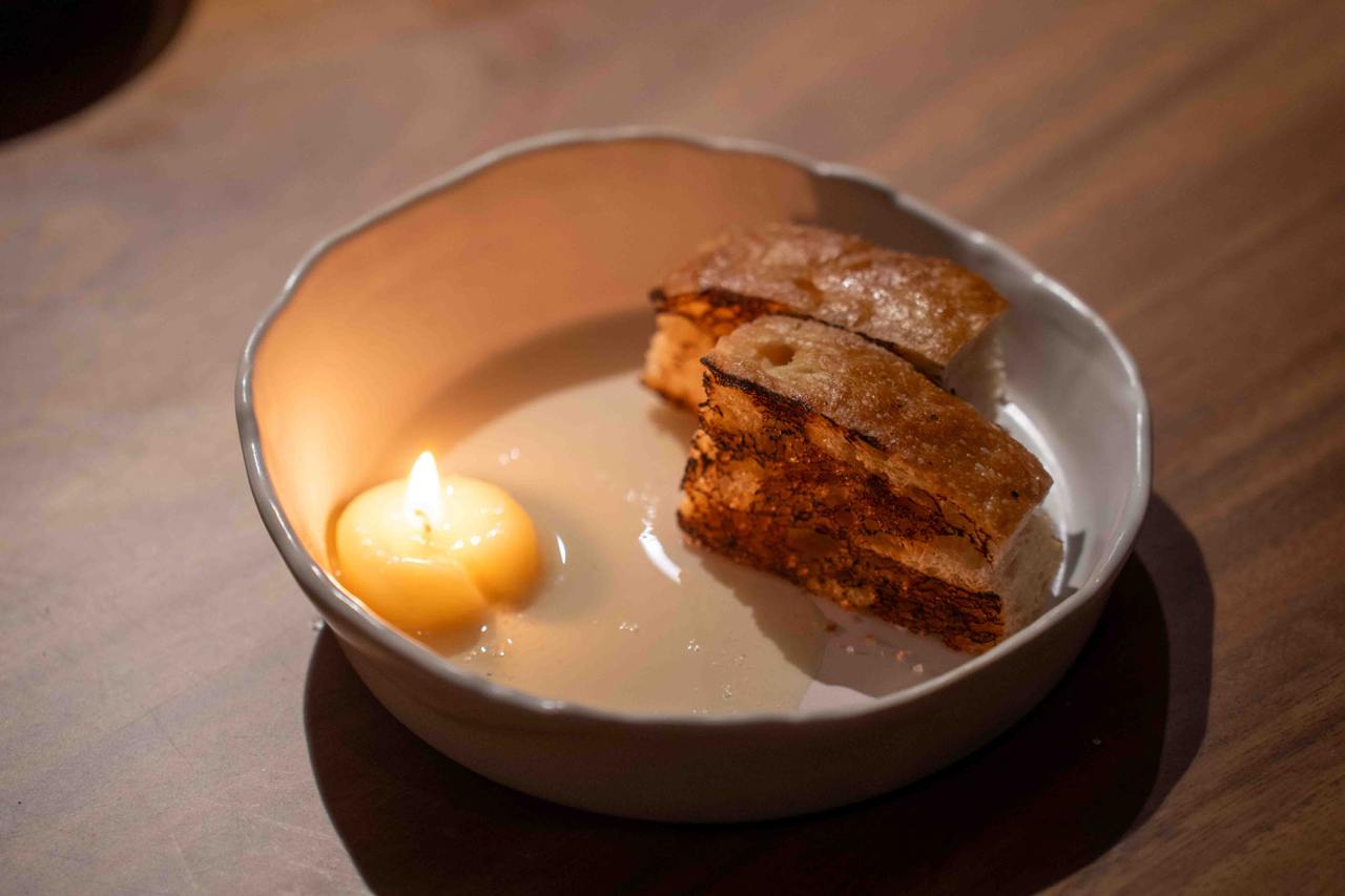 To start, you’ve got to get their signature Focaccia & Beef Fat Candle ($8). The foccacia bread itself is perfectly grilled and crusty, and you can smell the smoky—not burnt—aroma with each bite. The bread is served with a lit edible “candle” that’s made of beef fat, which melts into a buttery sauce for you to drench your bread with. The restaurant also uses a special flabadou tool to drip blazing hot flames dripping with molten beef fat onto dishes like the Coffin Bay Oysters ($6/pc) and Tuna & Fermented Daikon ($28). This is not only a spectacle to behold, but also adds a balanced smokiness to dishes that are usually eaten raw.