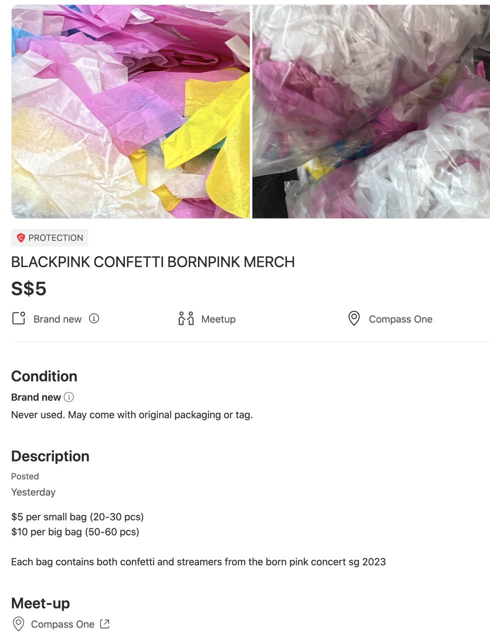 If you do wish to get an (affordable) souvenir from the concert itself, there are Carousell sellers offering confetti from the BLACKPINK concert from just $2—at least we can be sure these are more legit.