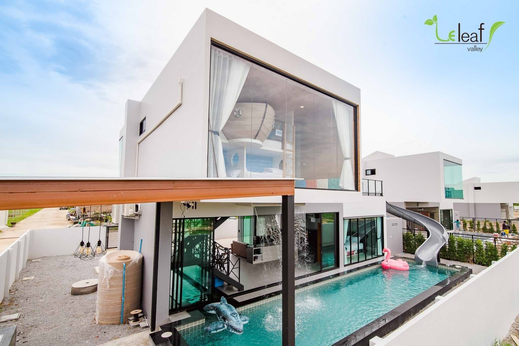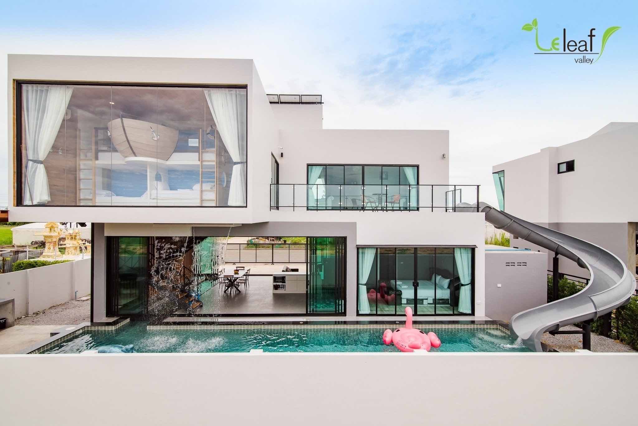 Located in a quiet area of Hua Hin, Pool Villa House Dragon is a two-storey villa with a built-in water slide that connects the bedroom to the private swimming pool!