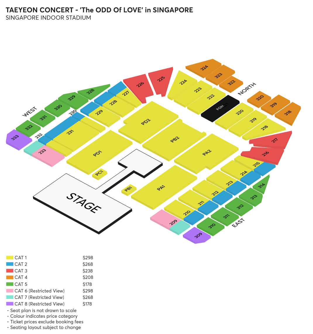 The concert will be held at the Singapore Indoor Stadium on 20th August 2023, 5pm. Here are the categories and ticket prices available for the general sale: