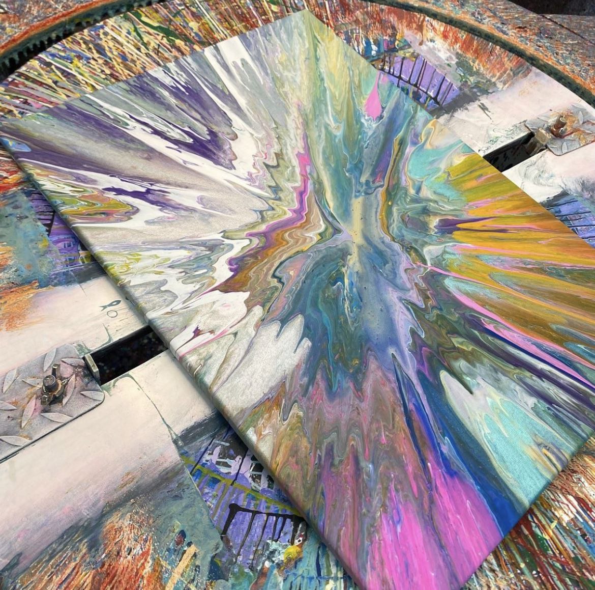 Painting is a science here at Motion Art Space, the original Motion Art Jamming studio in Singapore! You don’t need to be an accomplished artist to create beautiful works of art, simply let Newton’s Law take over and allow gravity and inertia to do the rest!