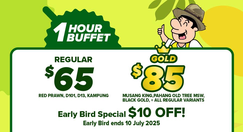 Aside from unlimited durians, you also get to enjoy up to 300g of fresh mangosteen and complimentary coconut water during your buffet session. If you reserve your spot by 10th July 2025, you can even enjoy $10 off the buffet from $55 per person (UP. $65 per person)! The Durian Buffet is available at the following dates and locations: