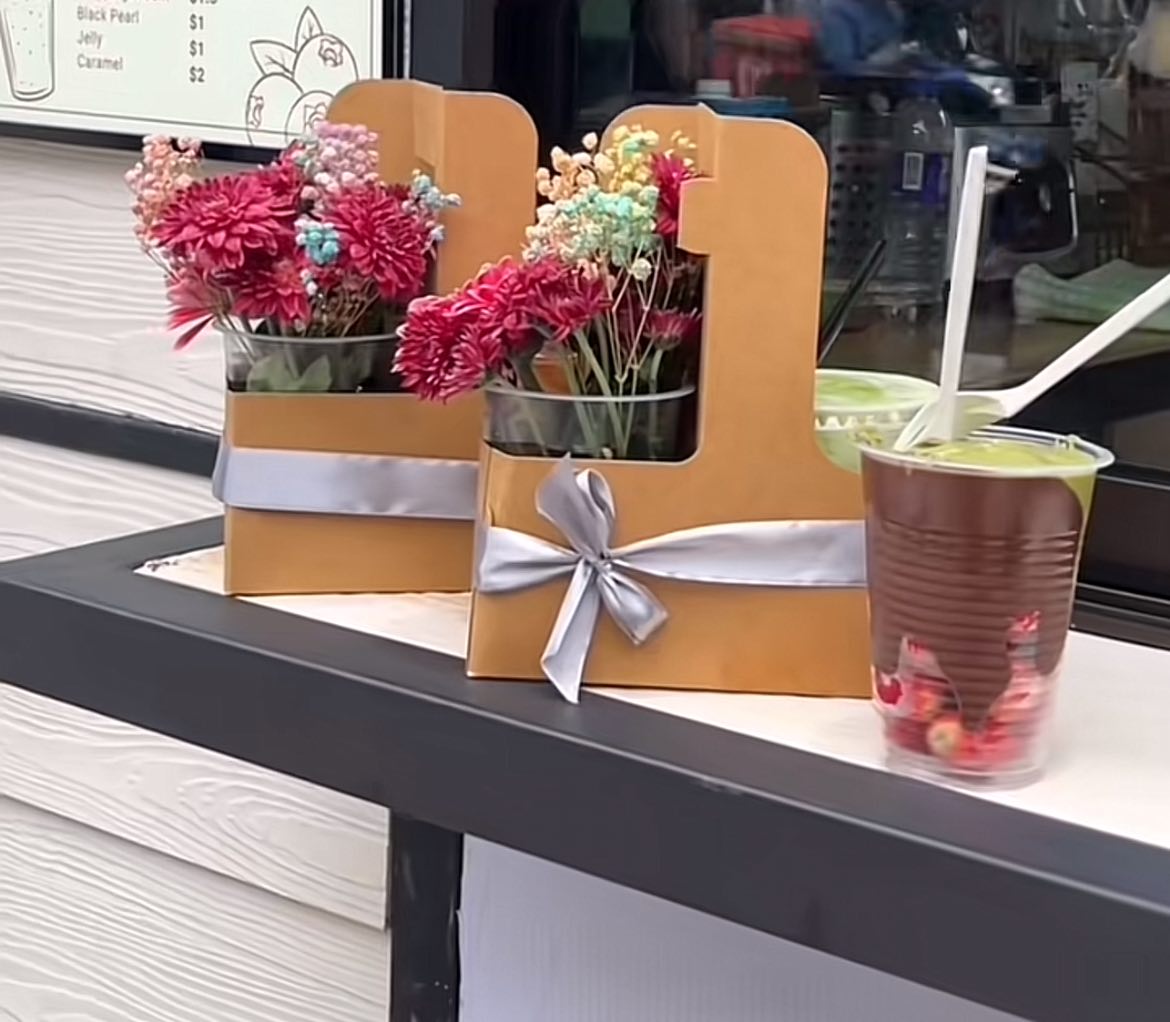 No, it’s not available in Singapore (yet), but it’s close enough: this florist and party store in JB offers these viral flower and coffee sets for just ~$11 SGD each! The set comes with a mini fresh flower bouquet and your choice of drink; and you can even customise the flowers you want with the set.