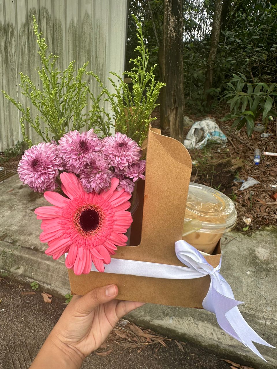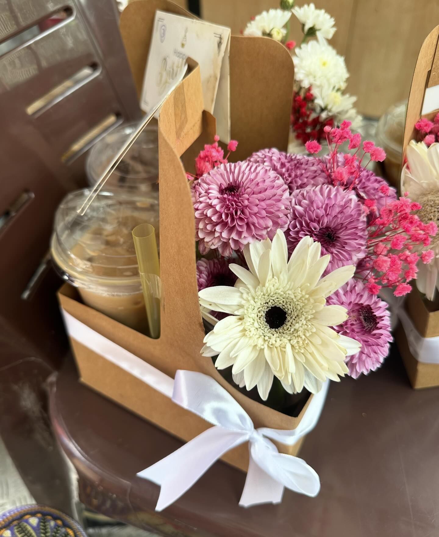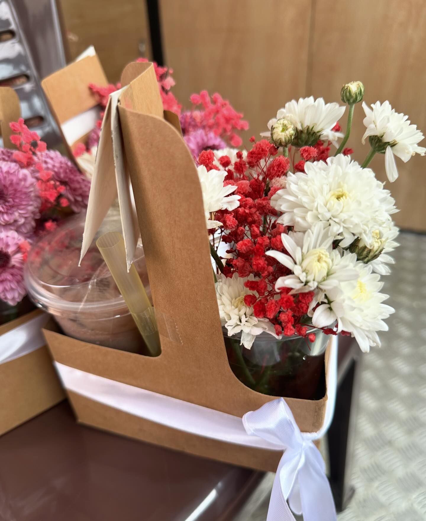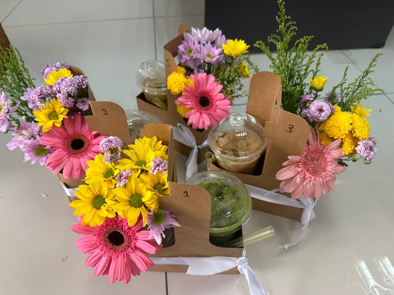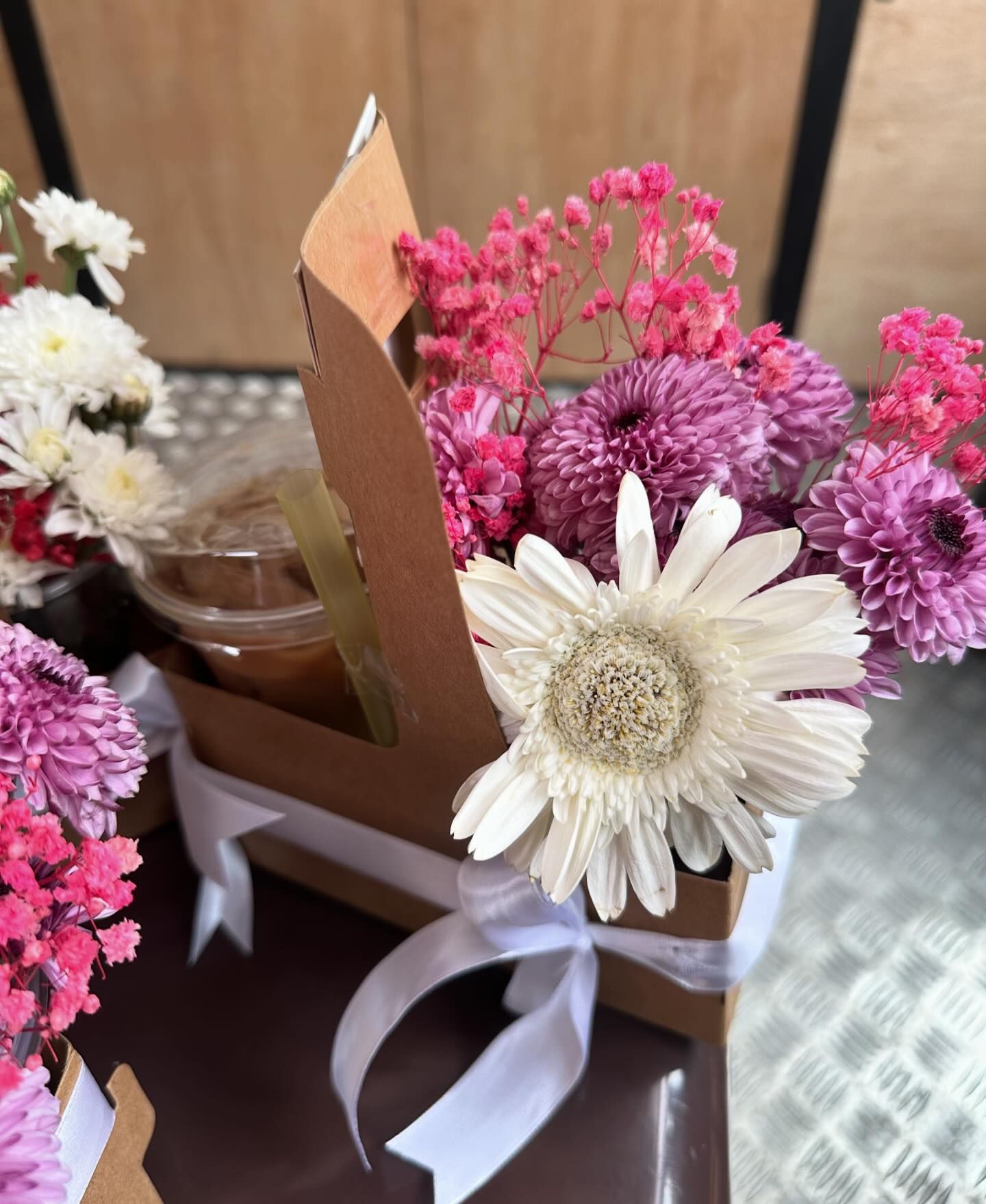 Flowers available for the bouquet vary depending on the day, but some options you can pick from include roses, daisies, pom pom, baby’s breath and more. You can also pick your choice of drink to go with the flowers, such as Iced Coconut Latte, Iced Matcha and Iced Mocha, just to name a few.