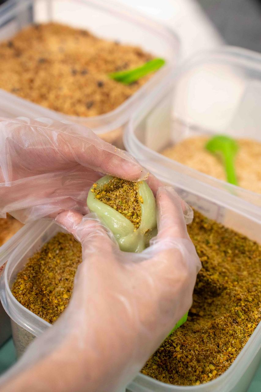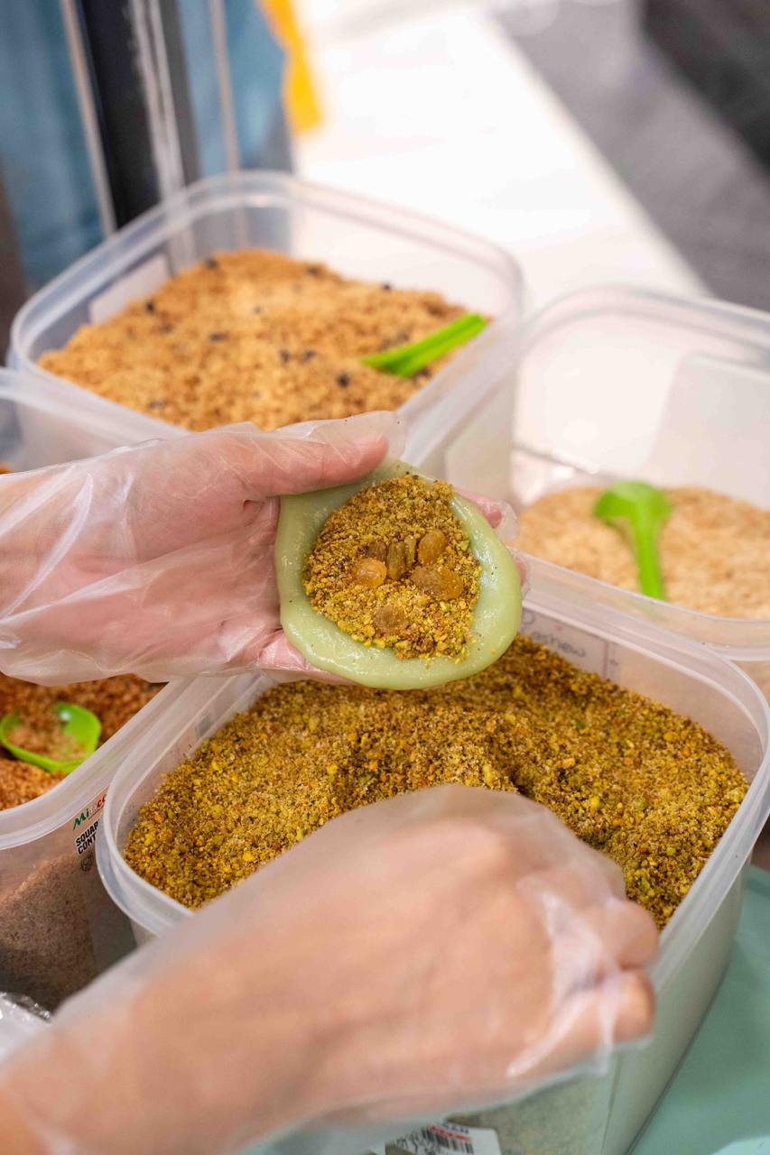 They’ve got 4 mainstays for their nut-stuffed mochi series: Pistachio Mix Golden Raisins ($3.80), Cashew Nut Nestum Cereal ($2.20), Hazelnut Mix Chocolate Ball ($3.20) and Peanut Mix Sesame Powder ($1.80). Each one is generously filled with their own housemade signature blend of nuts, and you can even make requests to customise your mochi if there are certain fillings you don’t want, like raisins for one.