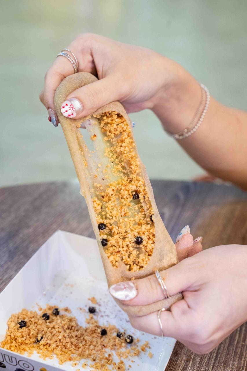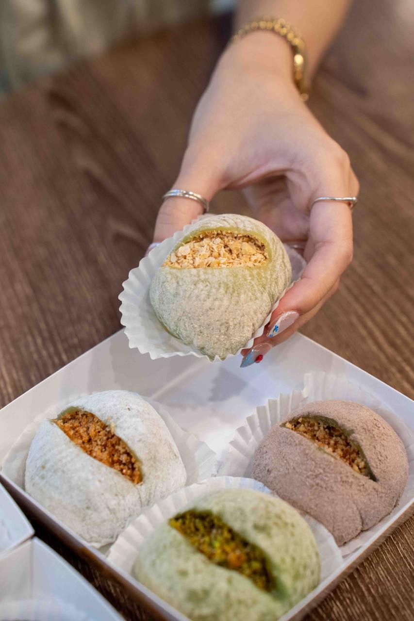 We like how the fillings were super nutty and fragrant, but not overly sweet. Our favourite has got to be the Pistachio, with the Peanut Mix Sesame coming a close second. The taste reminds us of the traditional peanut muah chee, except with a modern twist—made with chewier mochi and much more peanut fillings. The mochi itself is also really soft, stretchy and chewy, with a natural green hue that comes from pandan. If you’re not a fan of nuts, they’ve also got seasonal specials that change daily, featuring other mochi fillings like Purple Sweet Potato Mix Strawberry ($4.20), Sesame Paste ($2.50), Red Bean Paste ($2.50) and more.