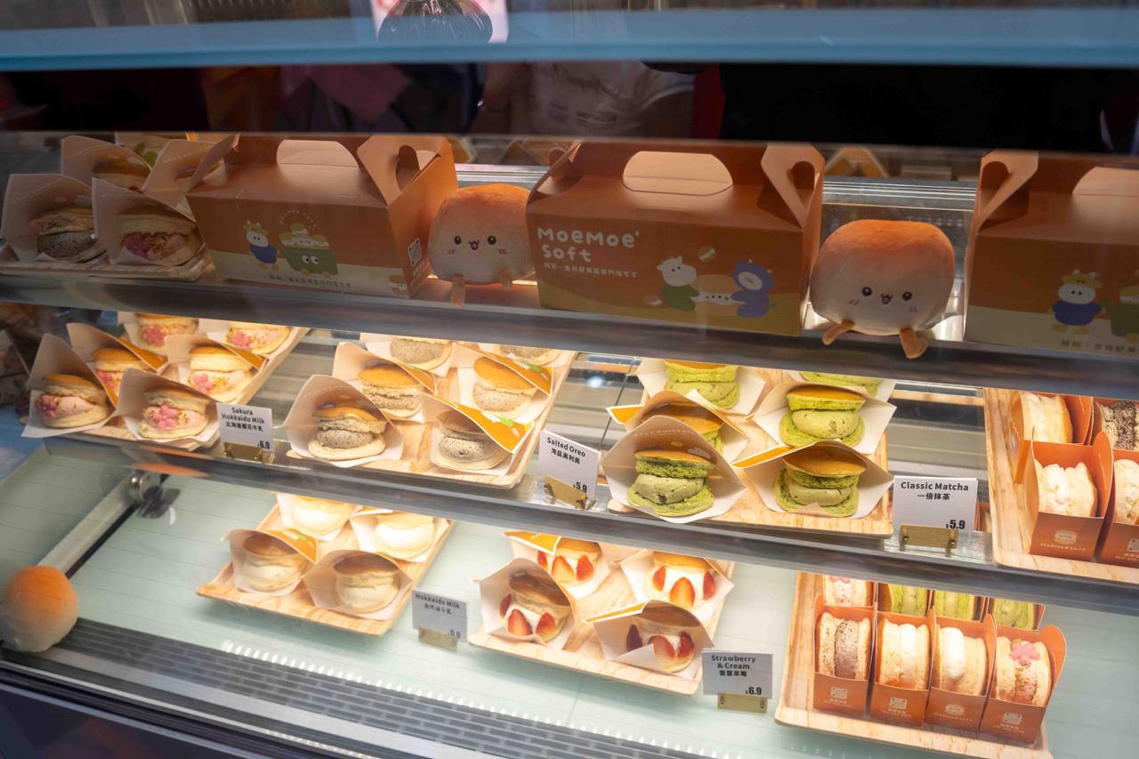 Moe Moe’Soft Soufflé is a beloved soufflé specialty chain, with over 30 outlets across China, and they’re known for their ultra fluffy and jiggly soufflé pancake “sandwiches” stuffed with generous cream fillings. All of Moe Moe’Soft’s soufflés and cream fillings are made fresh in-house daily, with new batches churned out a several times a day.