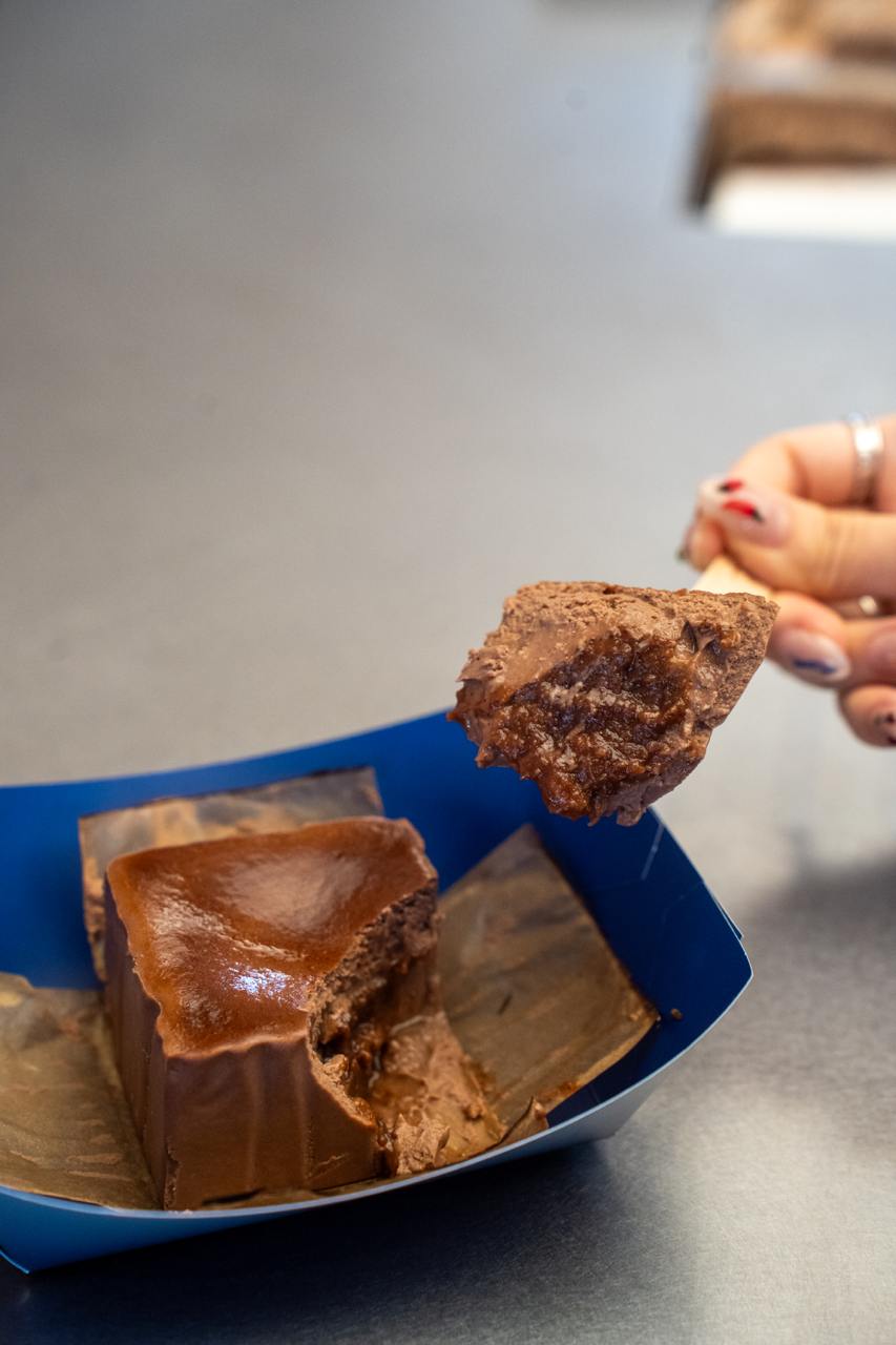 The store is more of a takeaway joint, with all their cheesecake square flavours on display at the counter for you to check out before making your choice. But if you want to enjoy your cheesecake on the spot, they’ll serve it to you on paper plates and you can dine-in in-store—but it’s standing room only. The vibe of the space is super sleek and minimalist: with stainless steel silver countertops and clean lines to reflect the angles of their iconic square-shaped cheesecakes.