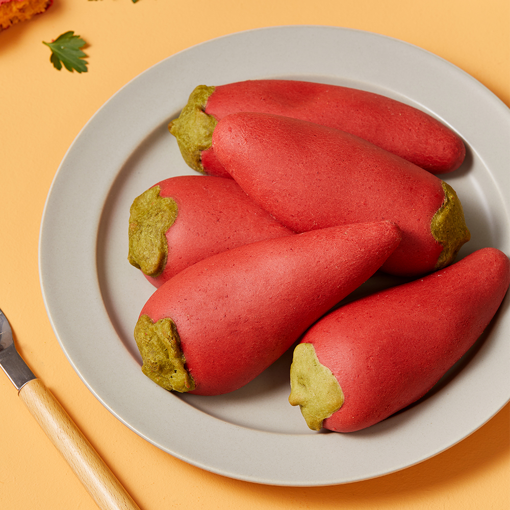 The viral Veggie Rice Bread series features quirky and fun breads realistically shaped like various familiar fruits and vegetables. Expect breads shaped like Purple Sweet Potato, Persimmon, Pumpkin, Leeks, Chilli, Garlic, Corn and more. The breads are made using rice—not flour—and real vegetables, giving the bread a unique soft yet chewy texture, and is also said to be healthier than regular bread.
