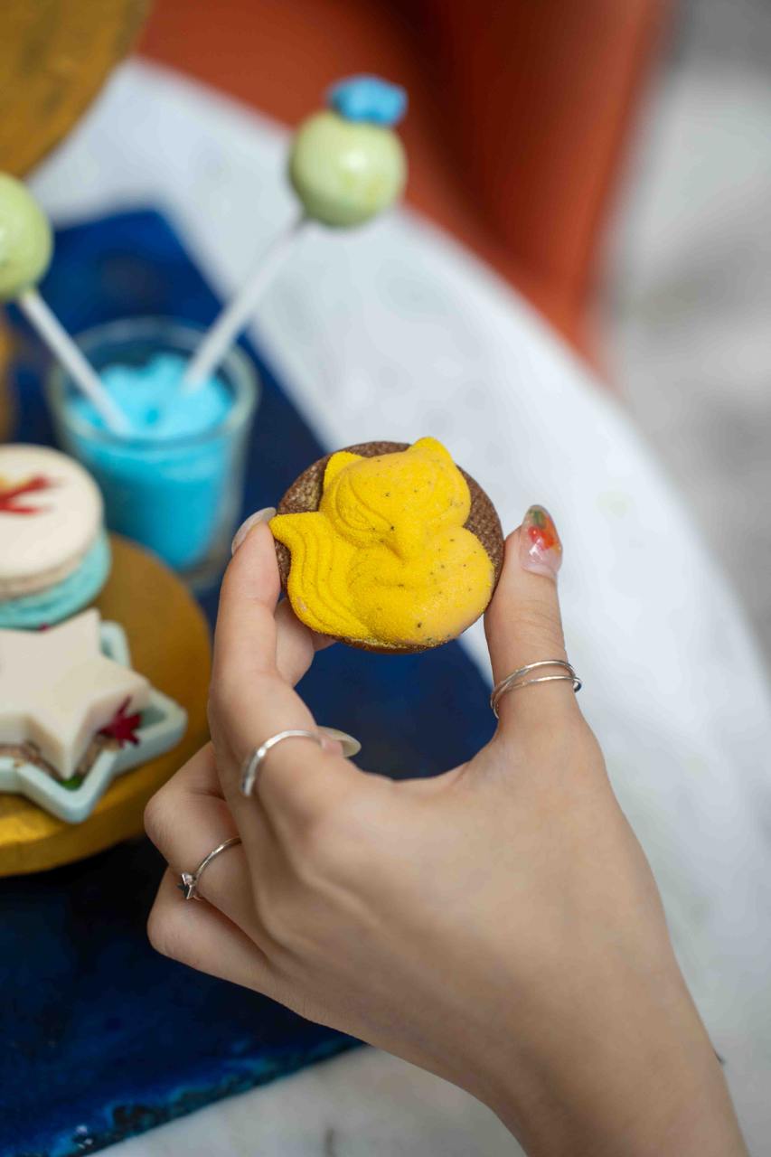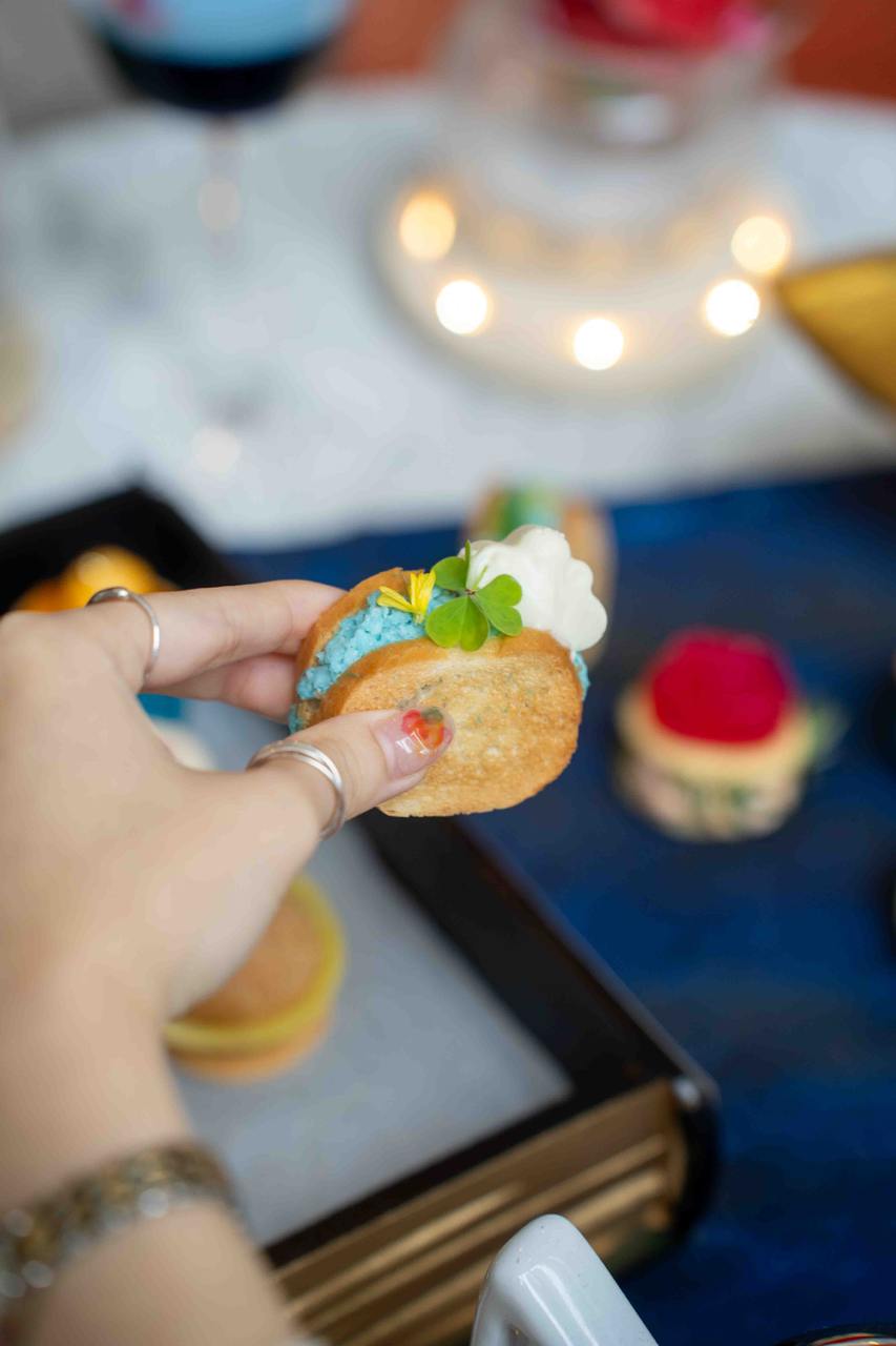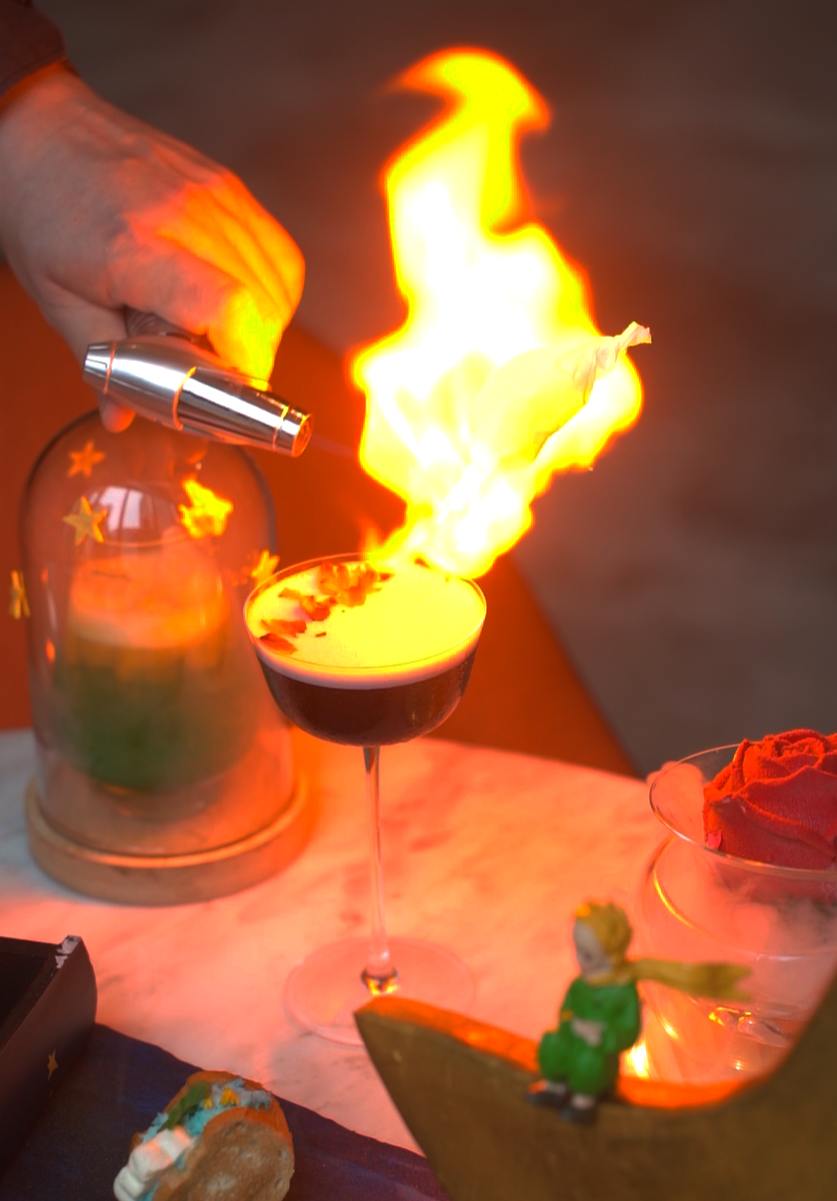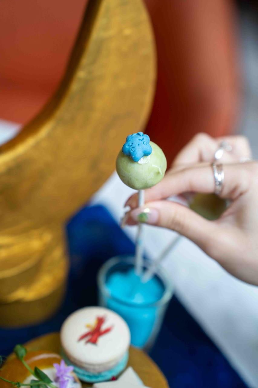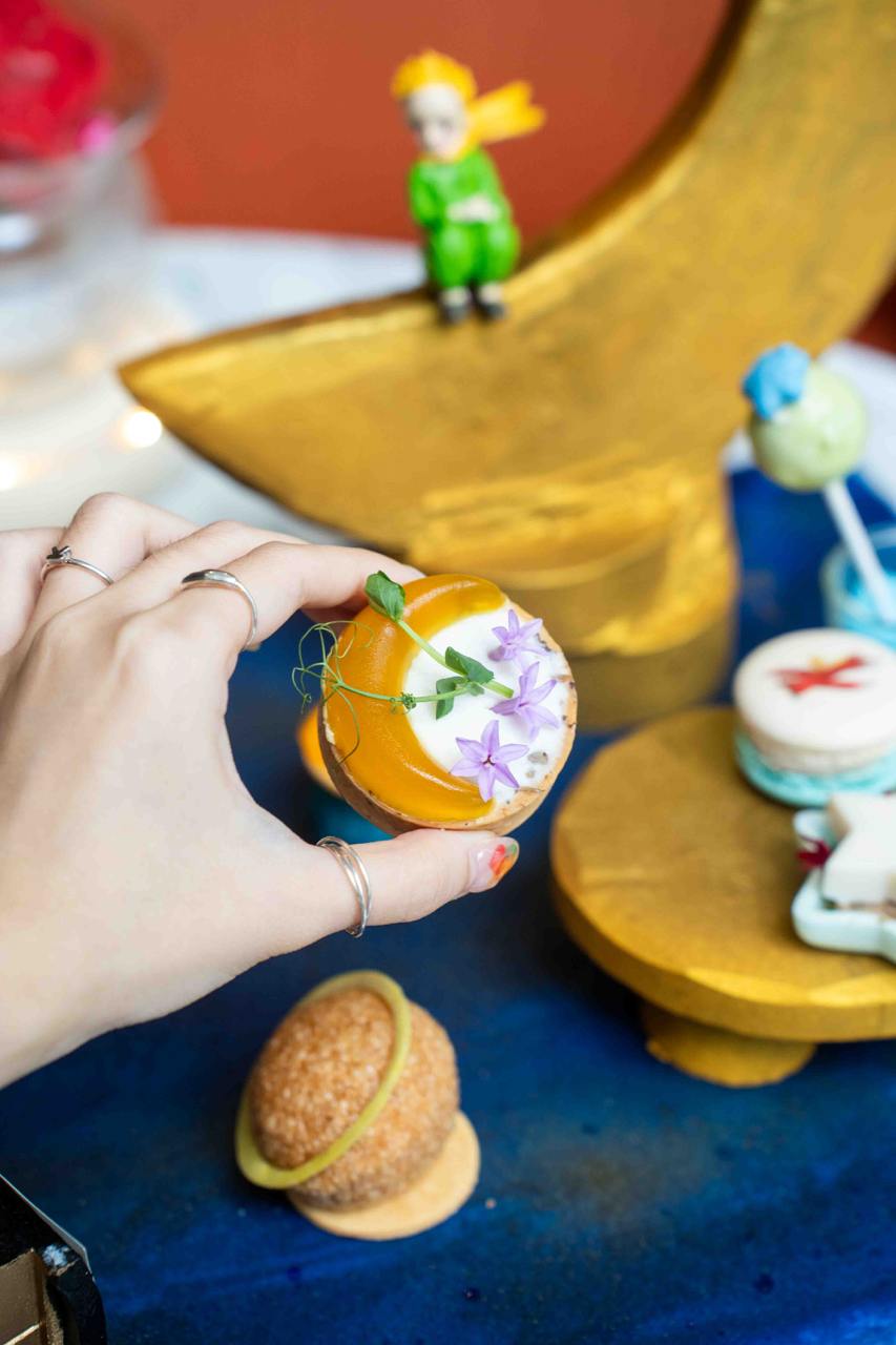 The Le Petit Prince Afternoon Tea features theatrical and eye-catching elements: like treats served in a “storybook”, flaming cocktails, and rose-shamed treats. The high tea set comes with a selection of handcrafted sweets and savouries inspired by The Little Prince book. Some of the items are reminiscent of characters from the book, including fox-shaped cookies, star-shaped monaka, edible “rose” mousse cake, crescent moon-inspired tarts and also macarons imprinted with the iconic Little Prince himself.