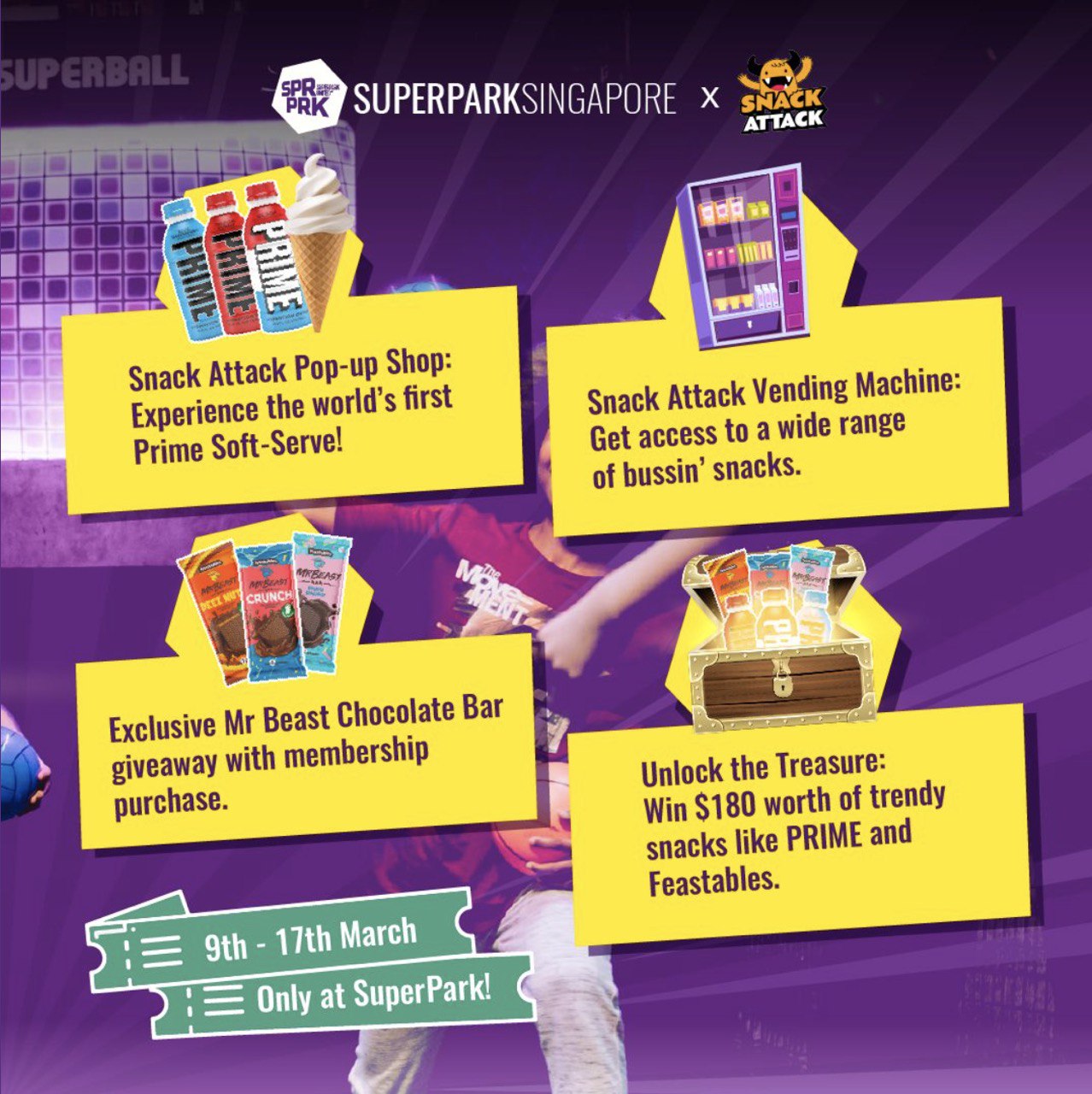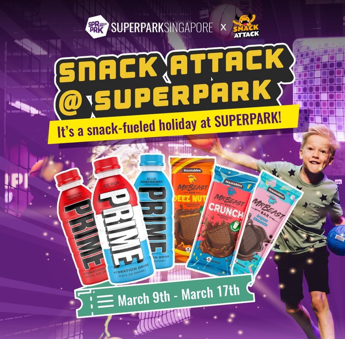 That’s not all, every SuperPark Singapore membership signup from 9th to 17th March 2024 will entitle you to redeem a free Mr Beast Chocolate bar! If you’re already a member, you can stand to win an ultimate snack box filled with viral snacks and drinks (worth $180) with every $10 spent on SuperPark Singapore tickets!