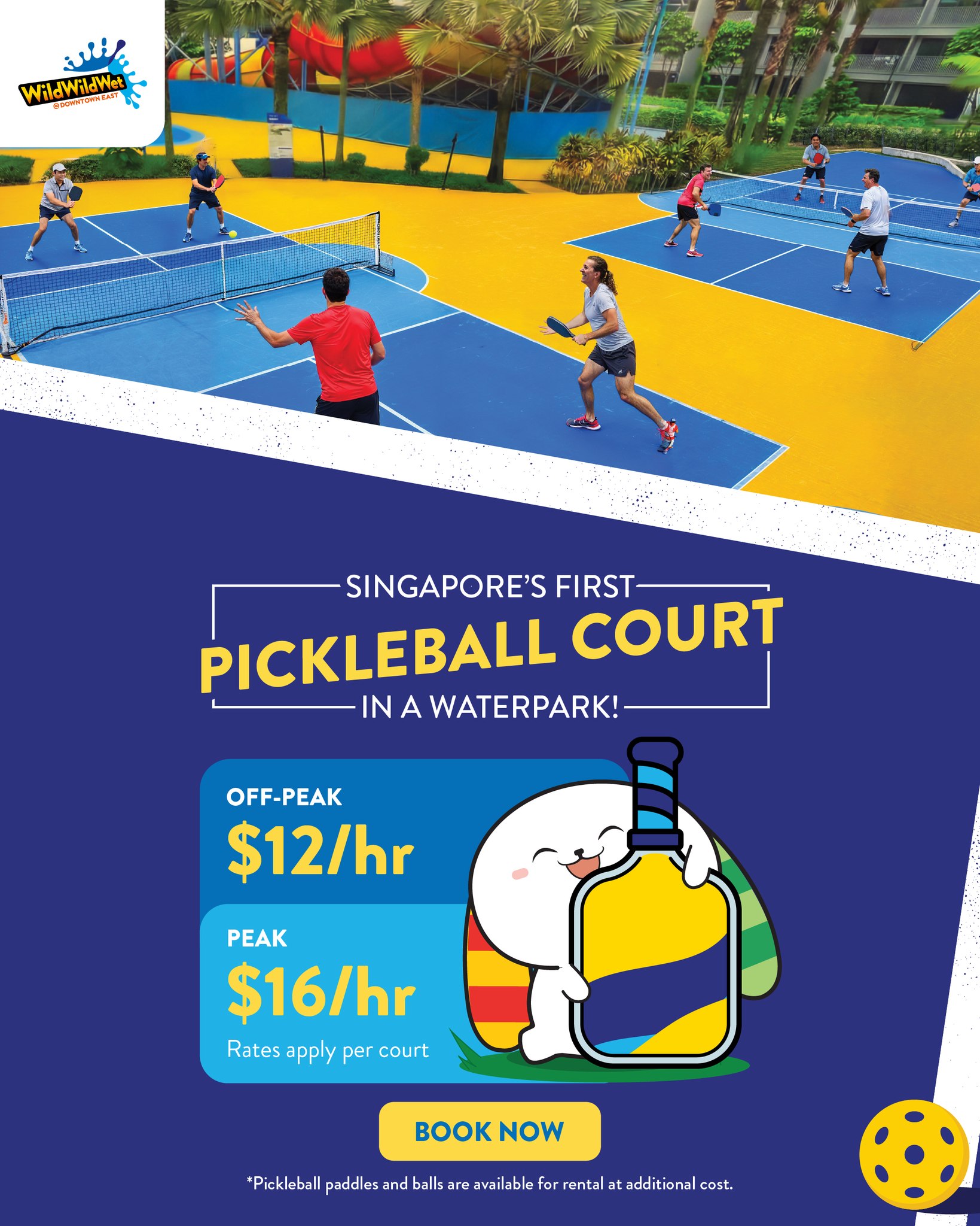 Note that access to the other rides and attractions at Wild Wild Wet are not included with the court booking; you’ll have to purchase admission tickets separately if you would like to access the rest of the waterpark. For more details and to make your court bookings at Pickle Splash @ Wild Wild Wet, see here.
